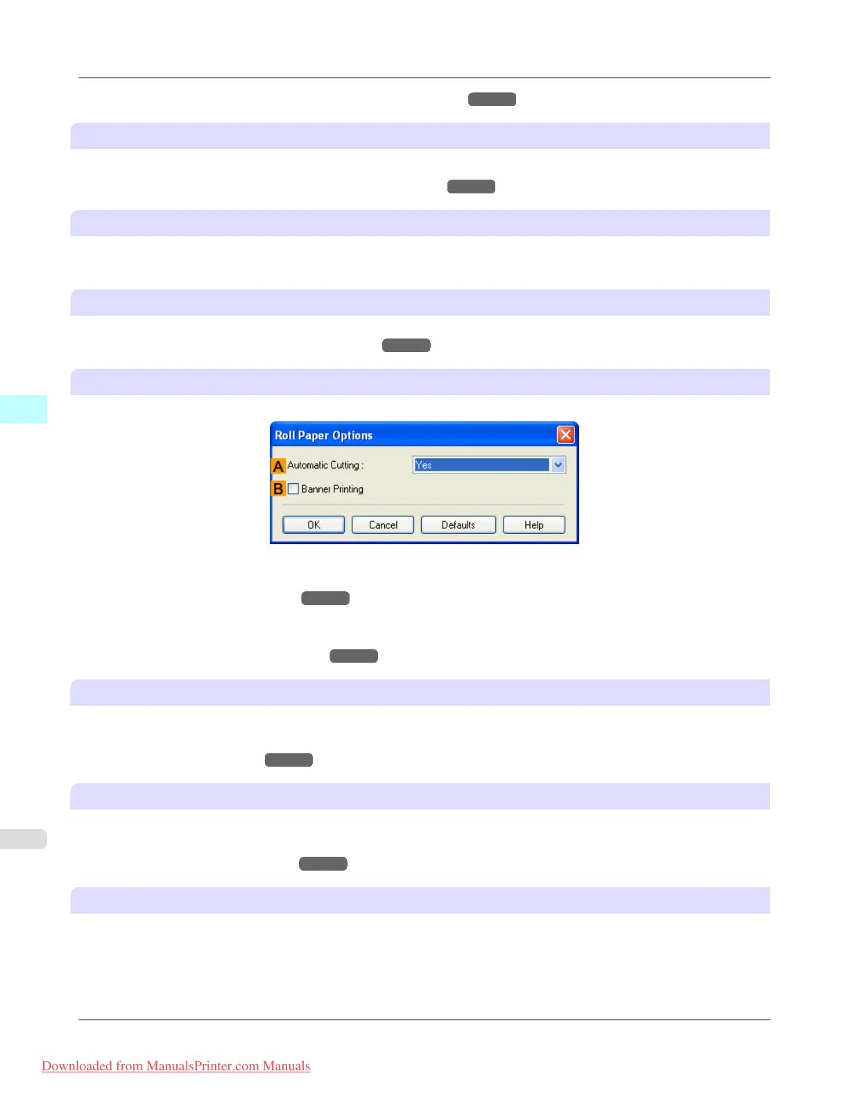 Complete optional roll paper settings. Click to display the Roll Paper Options dialog box.