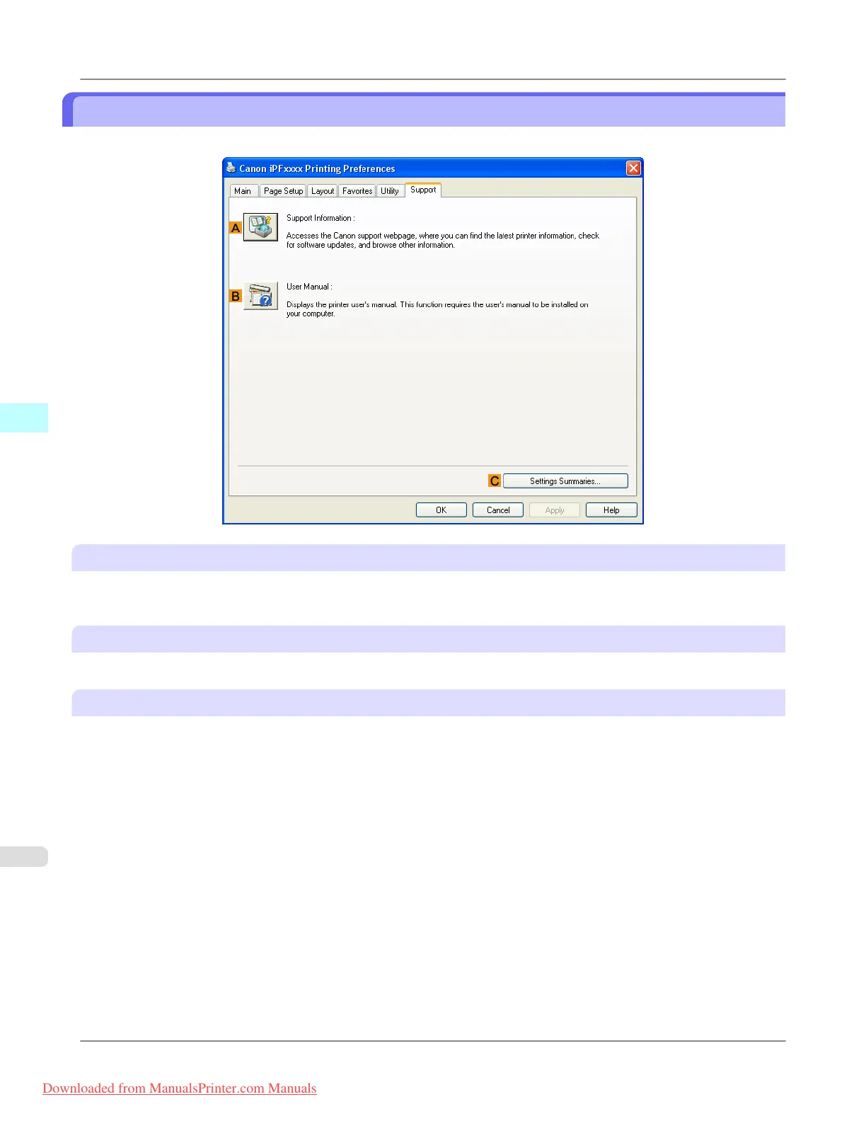 Click to view the printer user's manual. This function requires the user's manual to be installed on your computer.