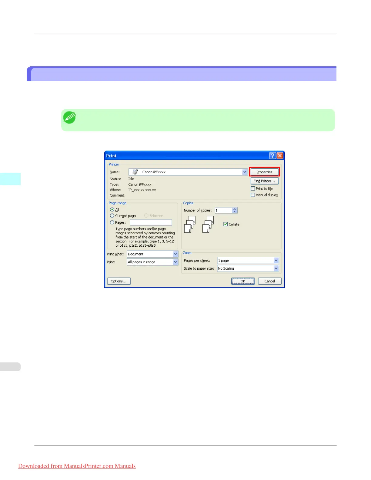 1. From the application software's File menu, select the printer setup menu to open the Print dialog box.