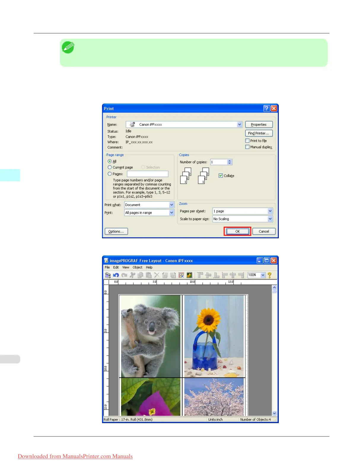 Laying out a Document Created with Multiple Application Programs on One Page iPF815