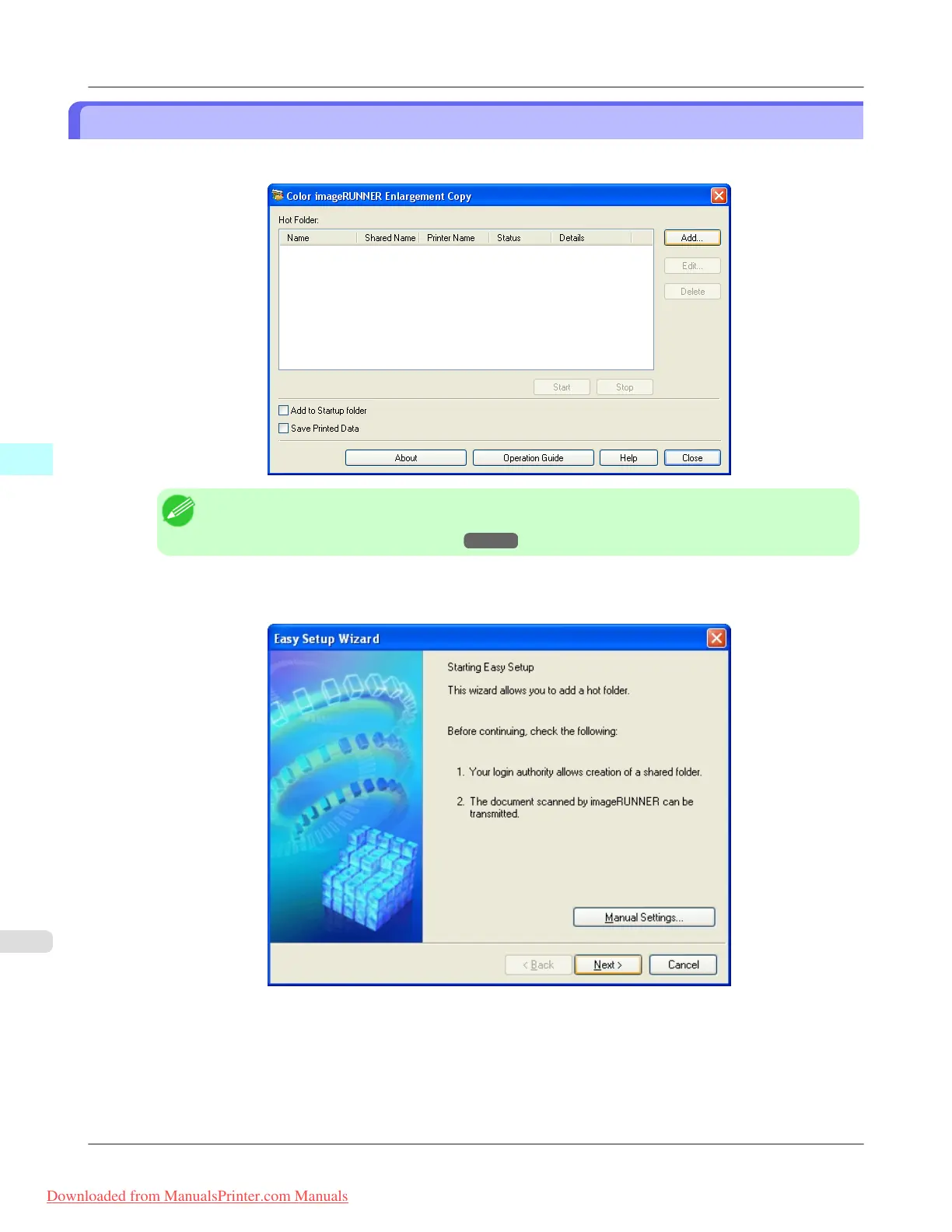 the step to open the Color imageRUNNER Enlargement Copy dialog box, see "Starting Color