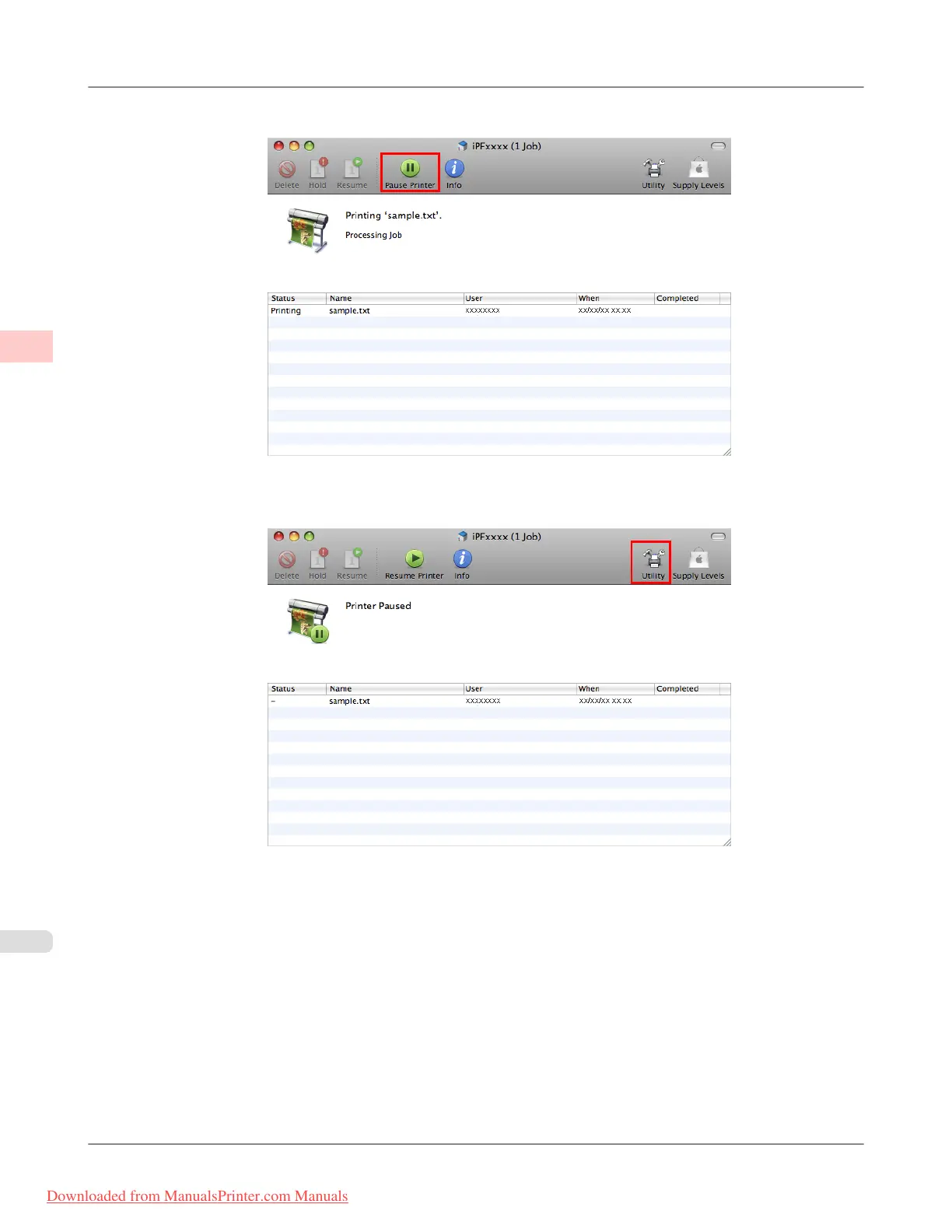 printer), click Utility to display imagePROGRAF Printmonitor.