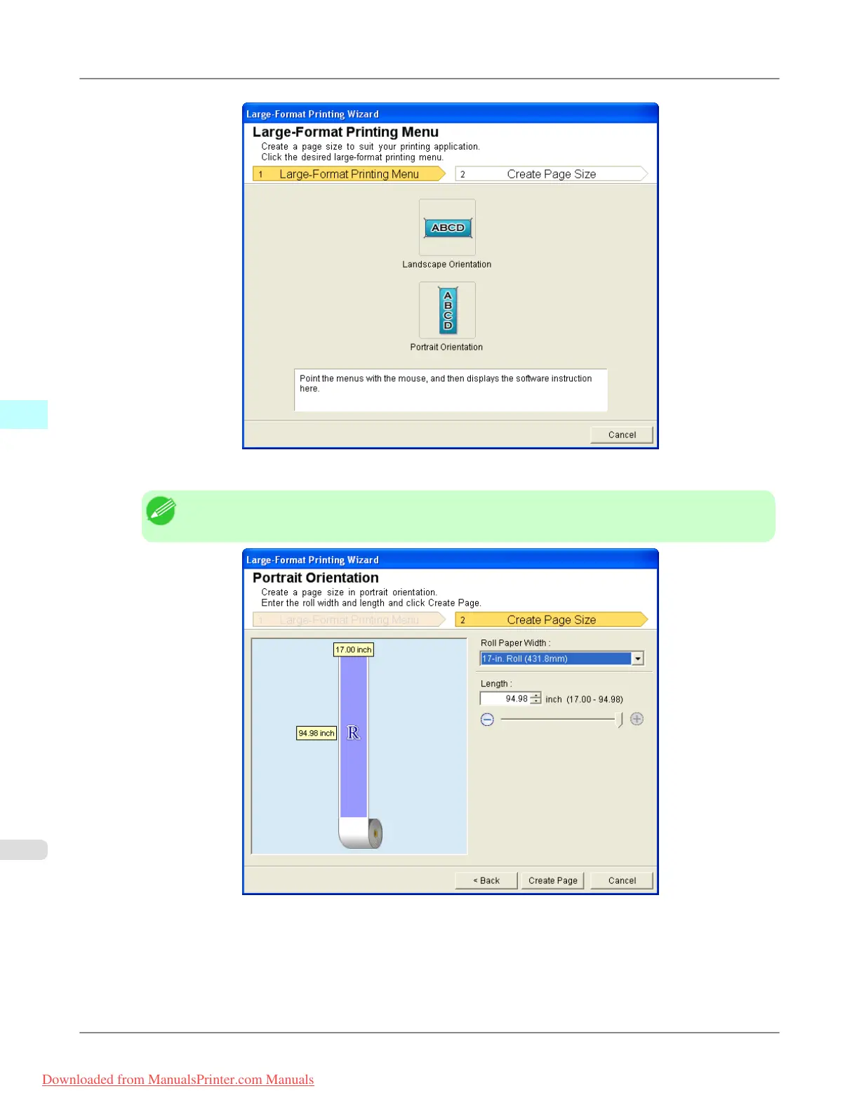 • The steps taken to create a Portrait Page Size will be used as an example to explain the procedure.