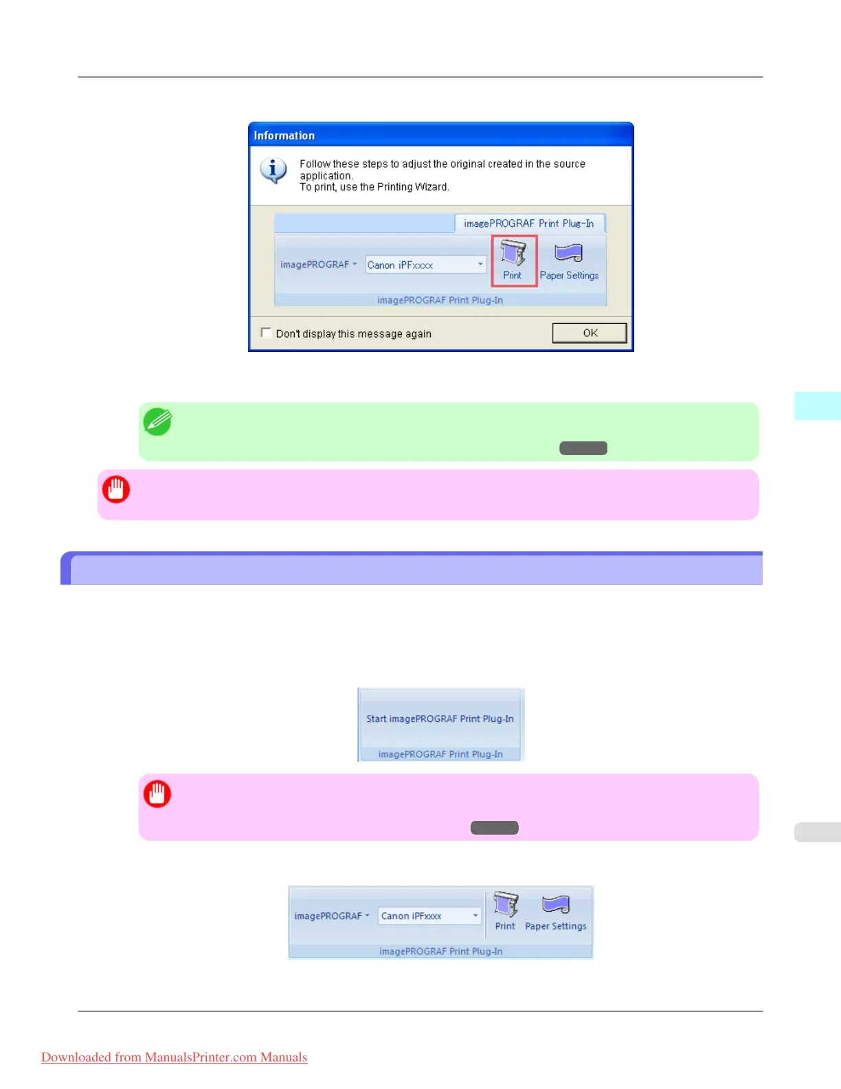 • If the imagePROGRAF Print Plug-In toolbar/ribbon is not displayed, refer to the following.