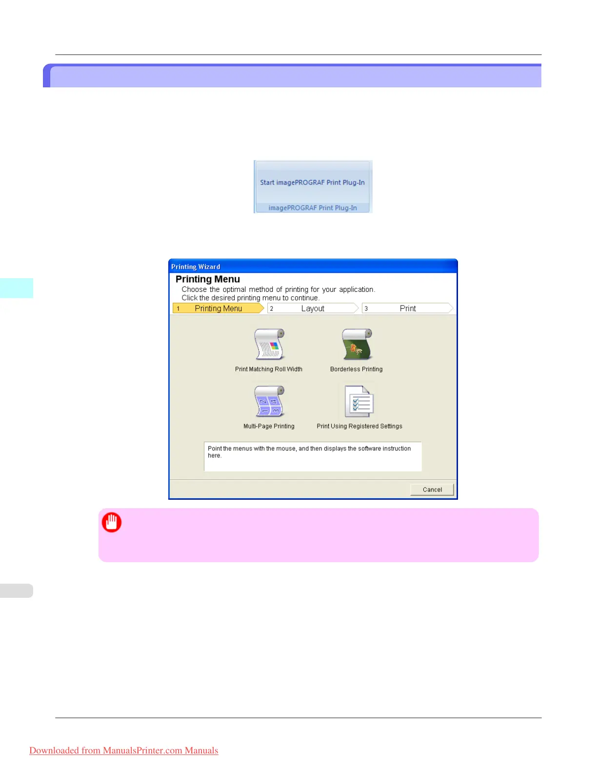 2. If Start imagePROGRAF Print Plug-In is displayed, click it.