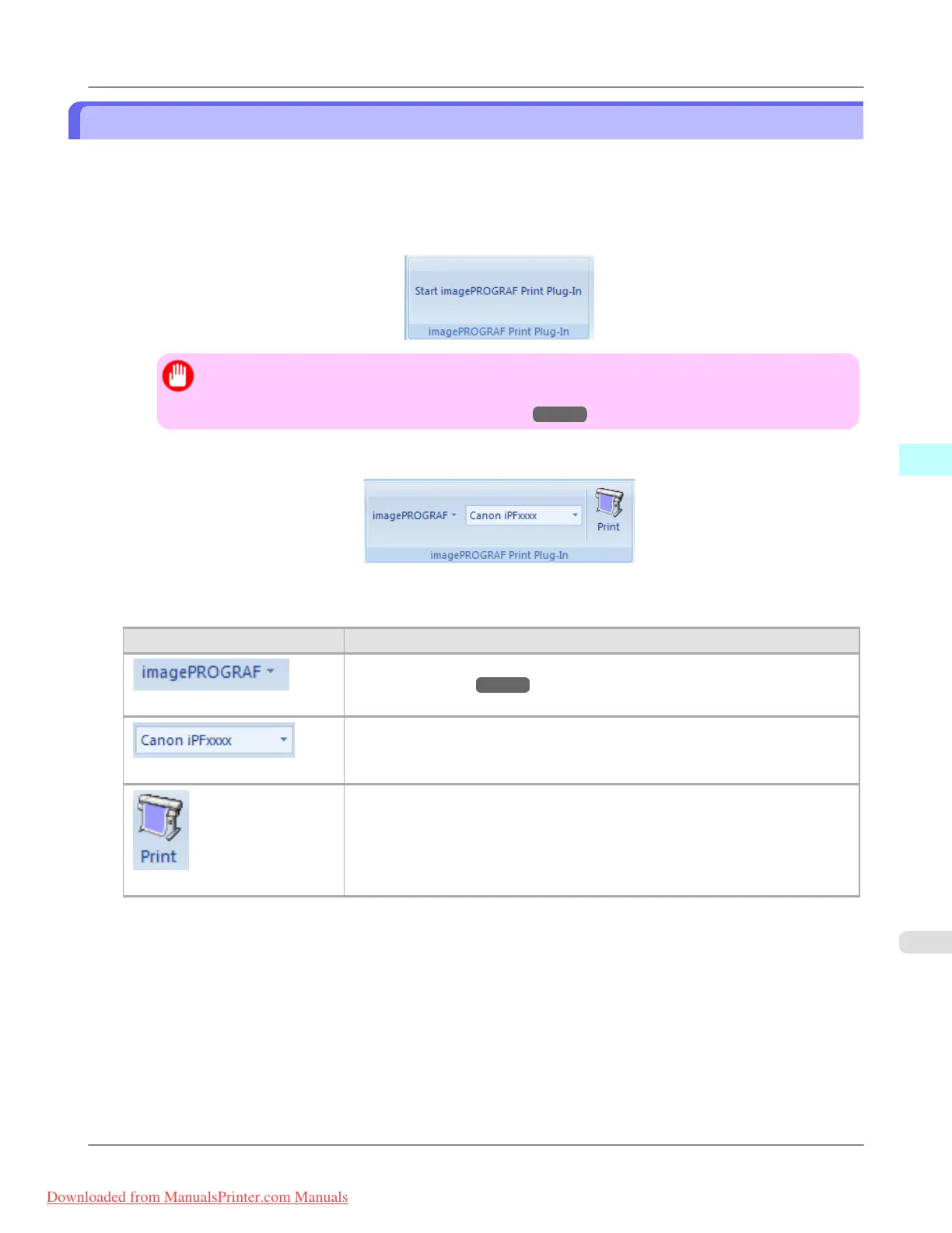 • If the imagePROGRAF Print Plug-In toolbar/ribbon is not displayed, refer to the following.