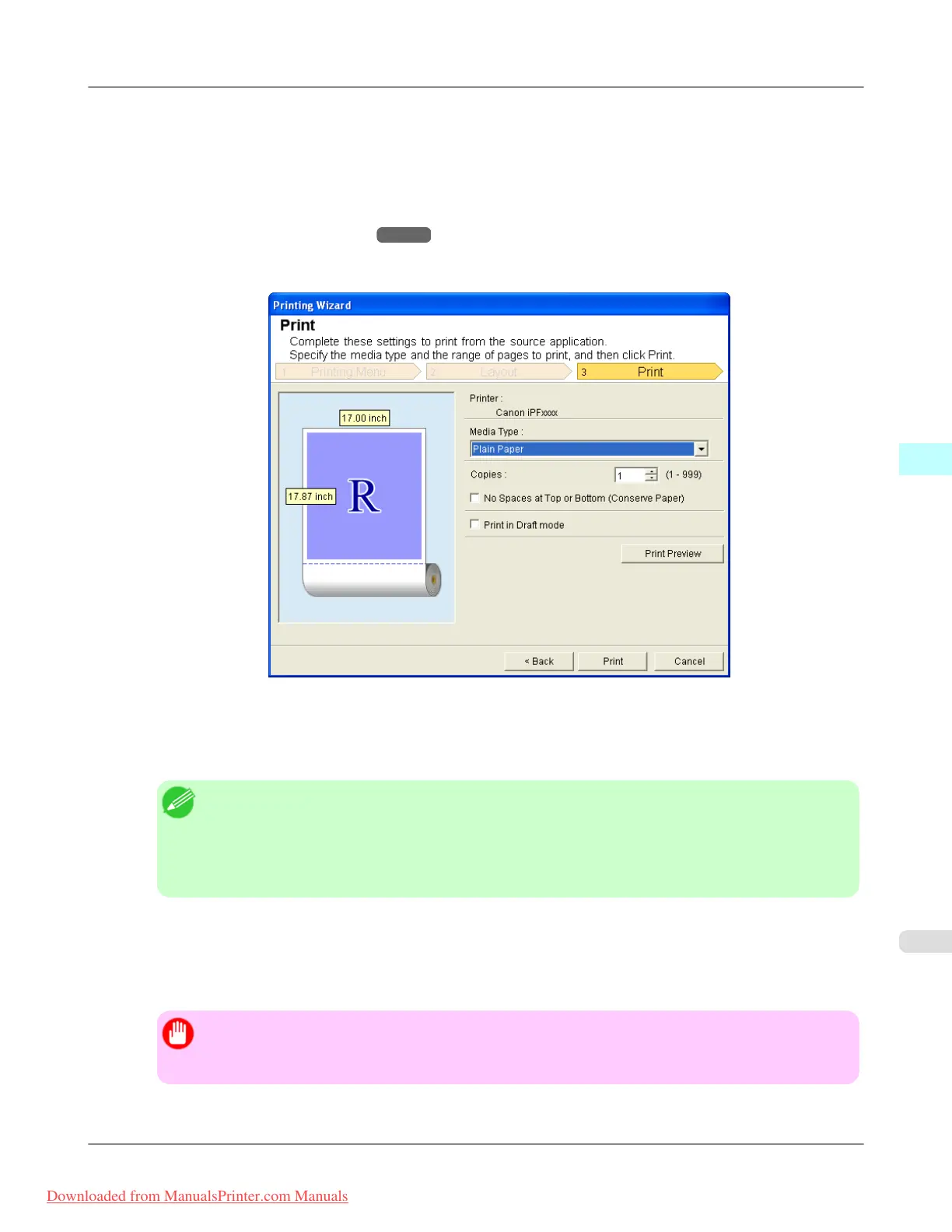 • When you print to the edge of the roll width, the maximum print length is 18.0m.