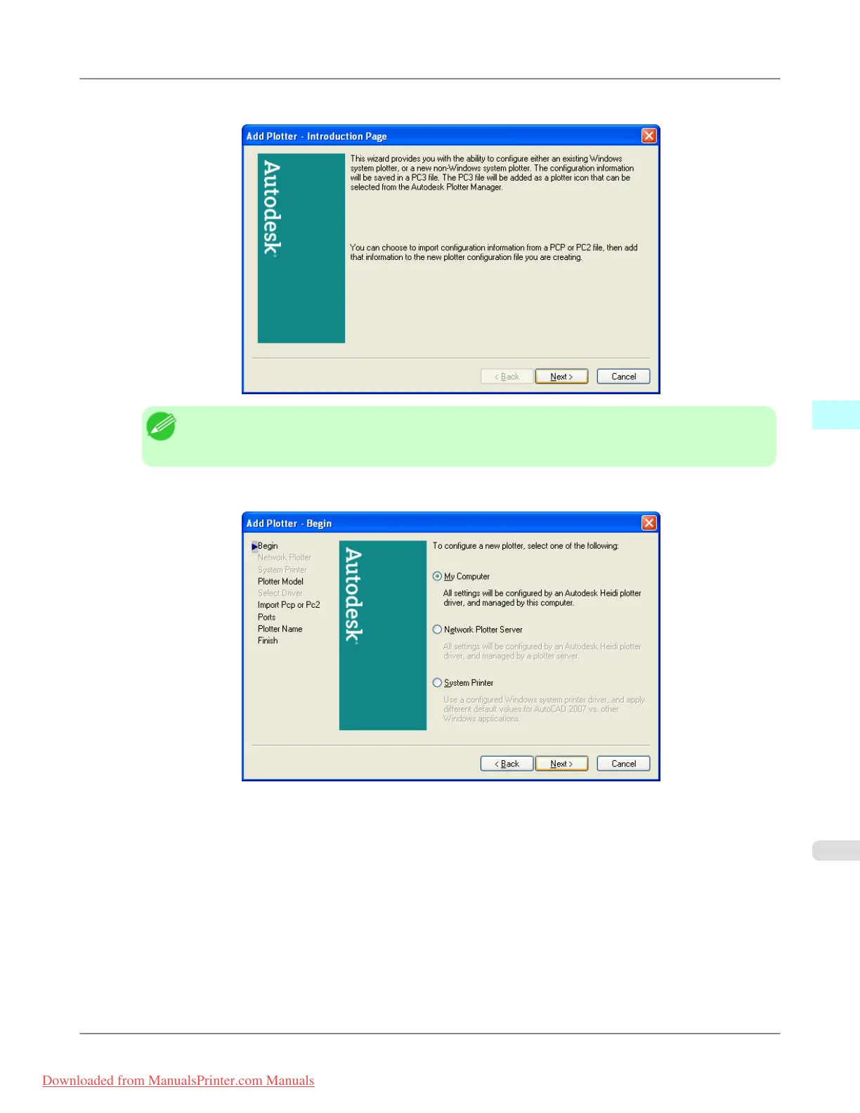 9. Add Plotter - Begin screen opens. Select My Computer then click the Next button.