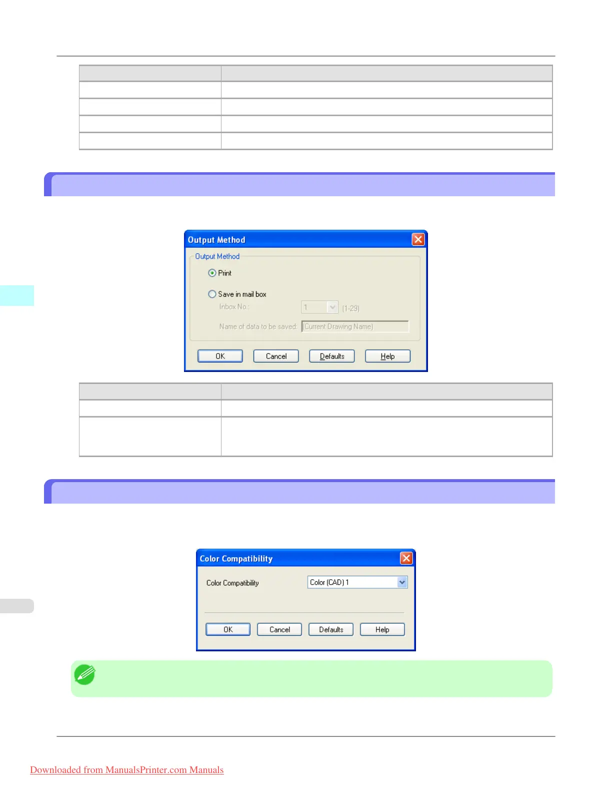 Output Method dialog box appears when you click Output Method button on the Main sheet in the Custom Properties