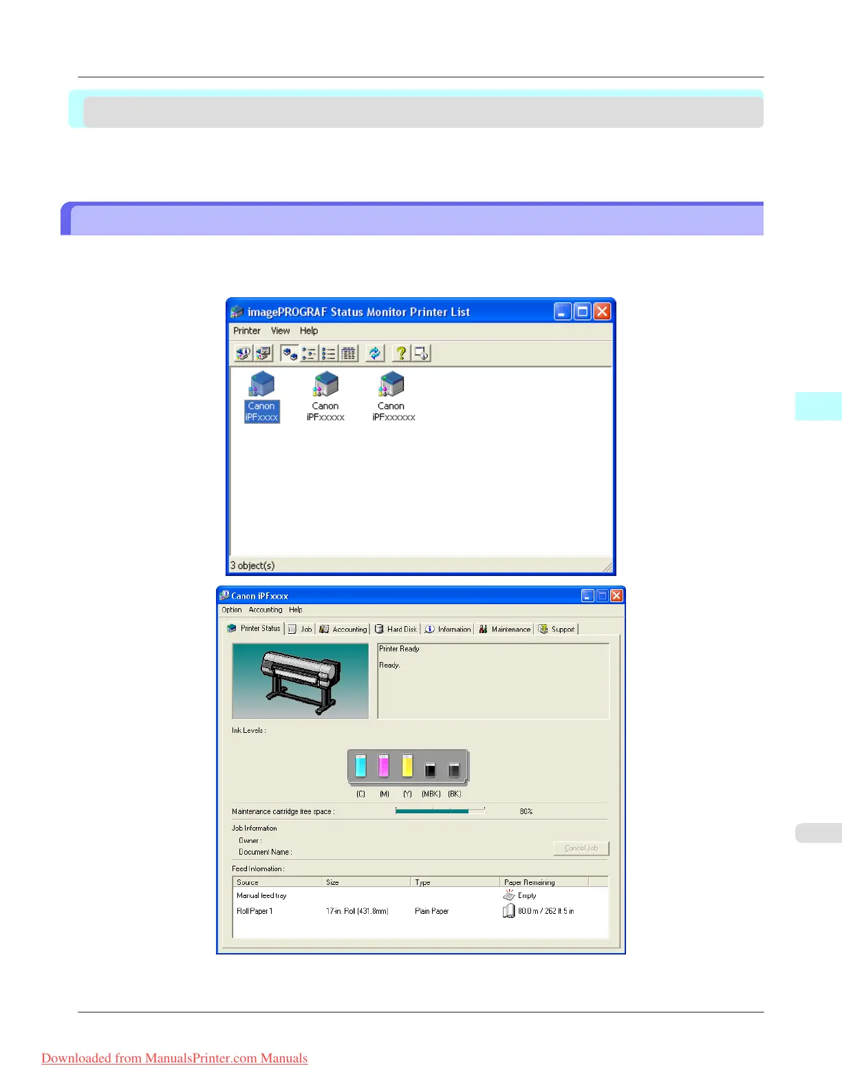 imagePROGRAF Status Monitor is a utility for checking the printer status and managing print jobs.