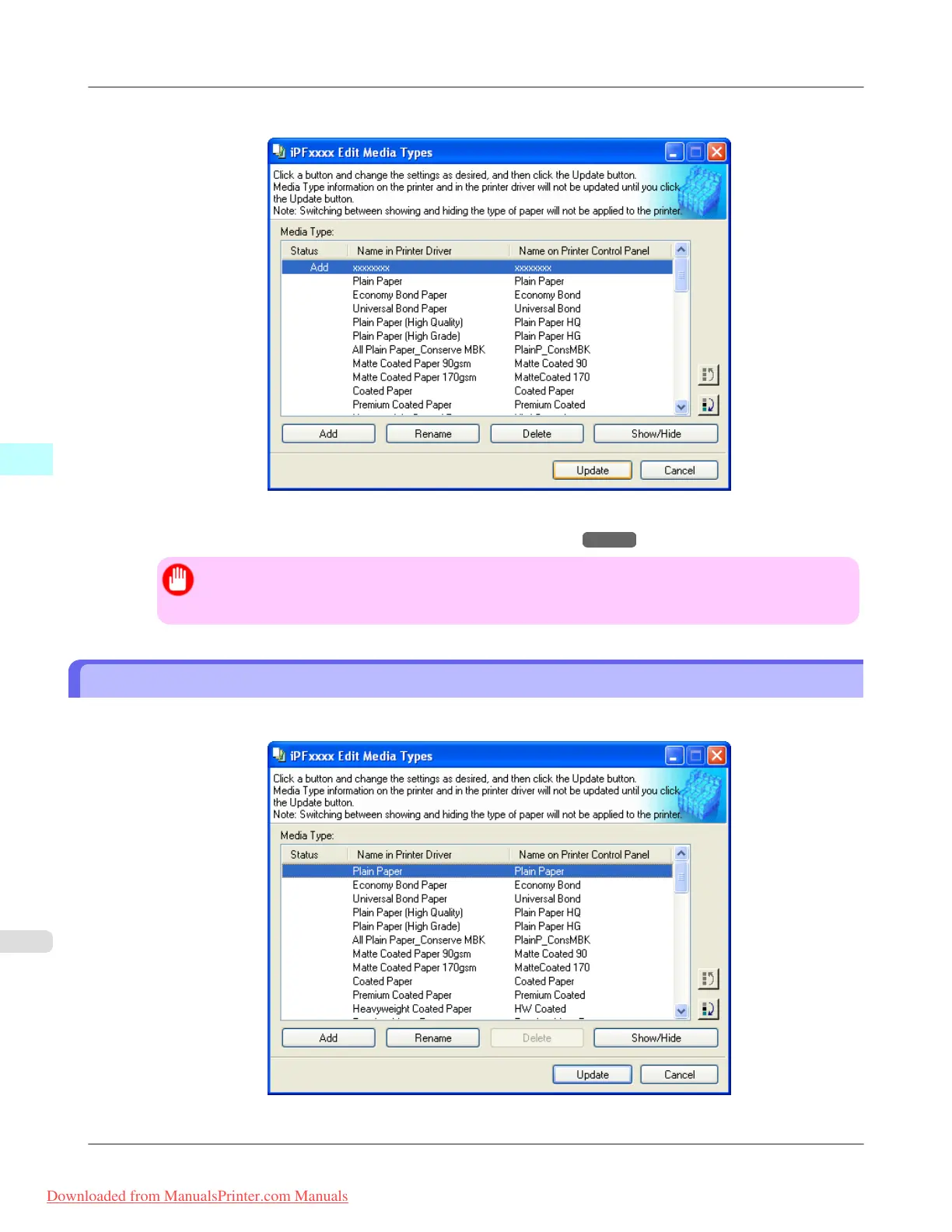 Media Types wizard is started at this point. For details on the procedure to update paper information