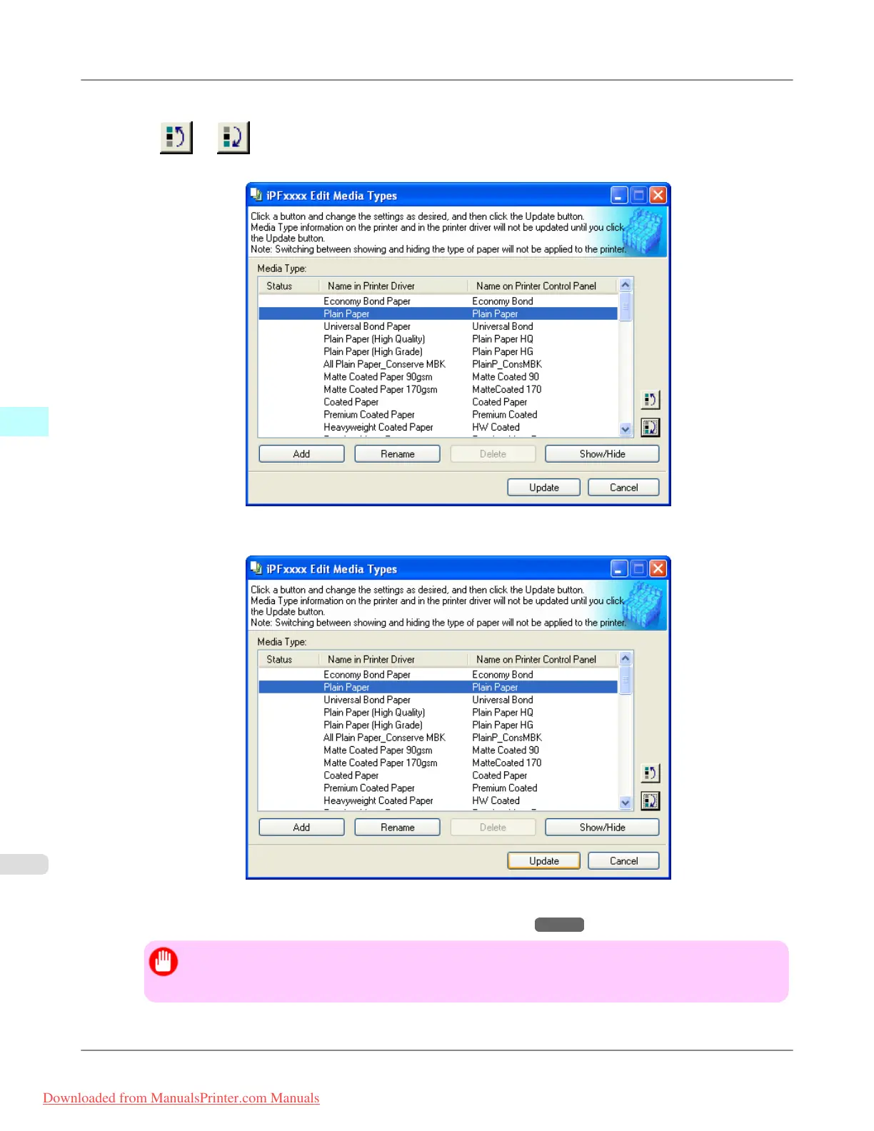 the paper in the Media Type list for which to change the display order, and then click the buttons to move the
