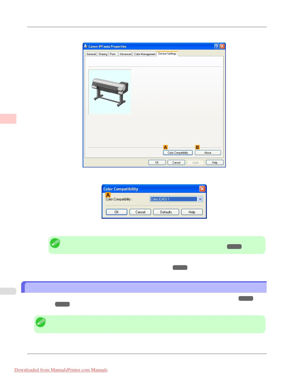 5. Select the desired color settings in the A Color Compatibility list.