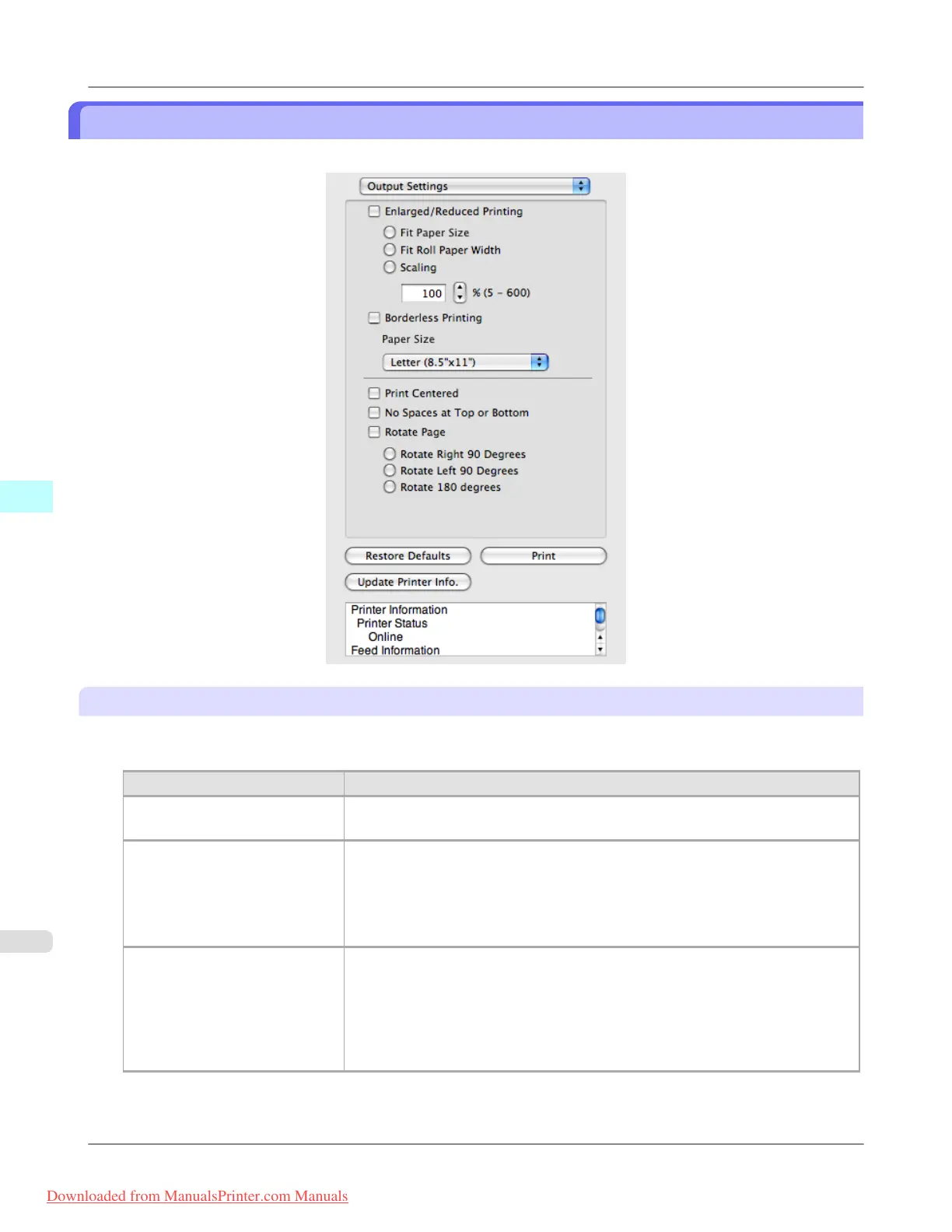 output. Select the media size to print from Paper Size.