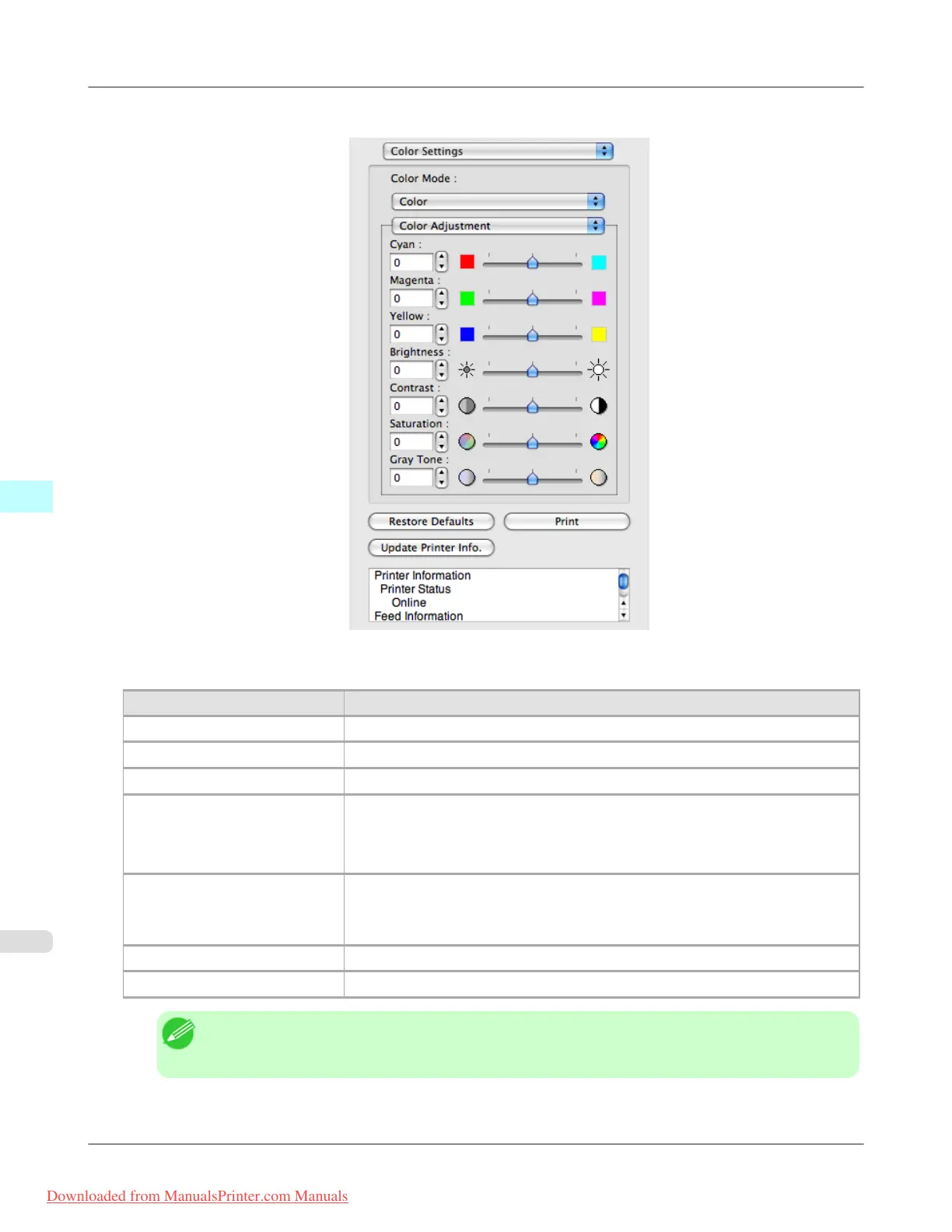 Brightness Adjusts the brightness of the entire image. When the results of the printout are