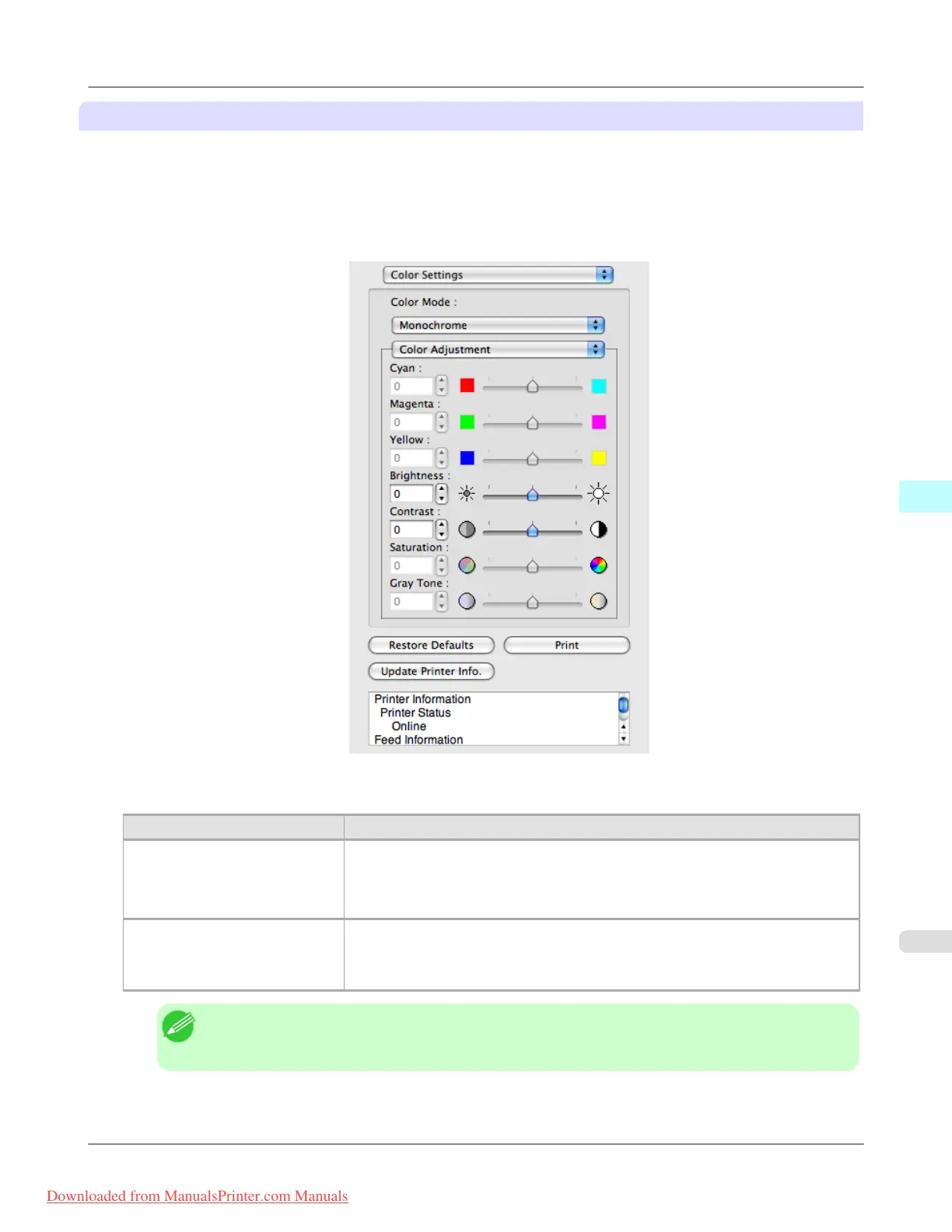 Brightness Adjusts the brightness of the entire image. When the results of the printout are