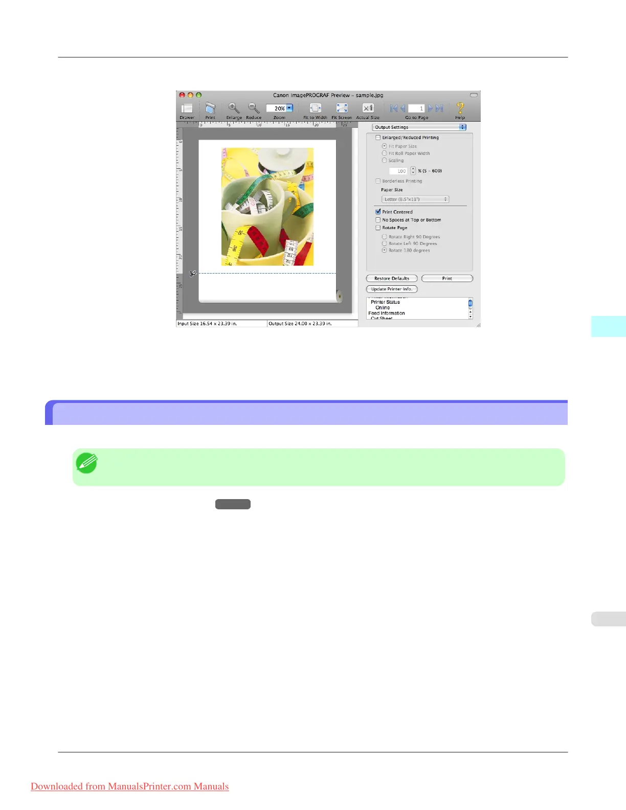 1. On the Output Settings panel, click the Print Centered check box on.