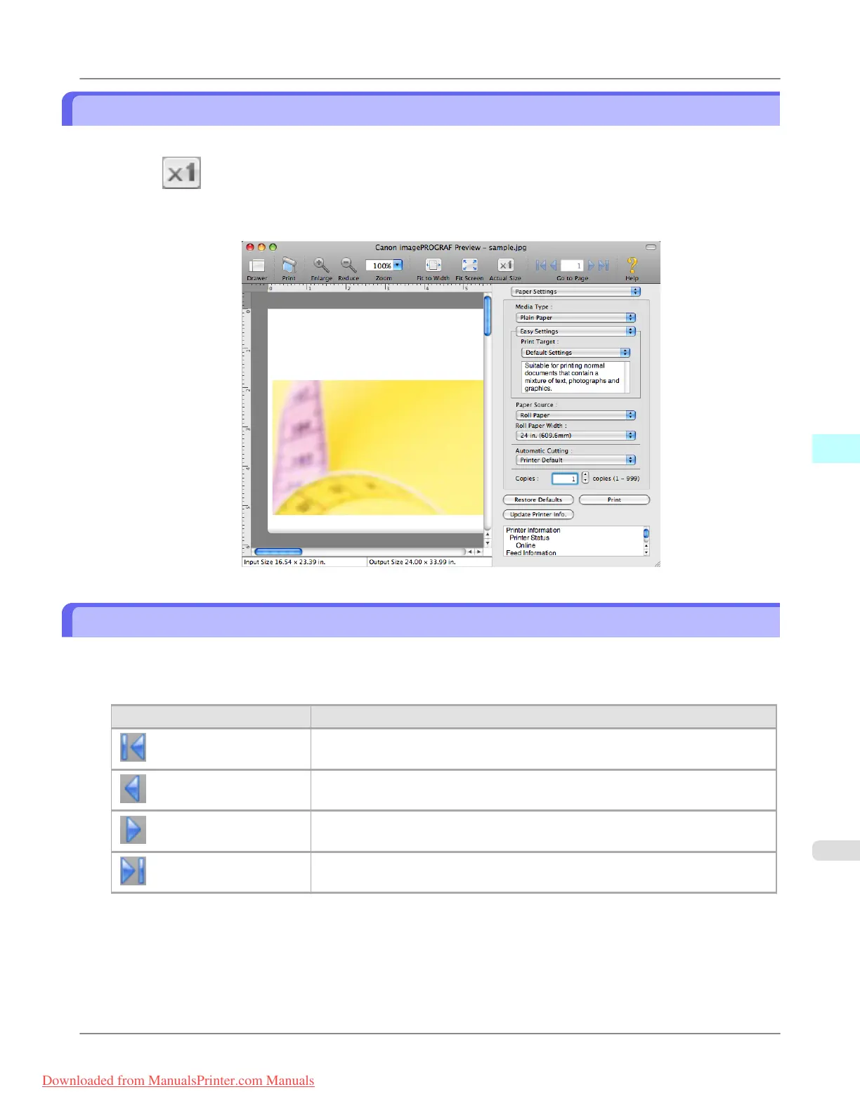 In the preview area, you can display the actual size.