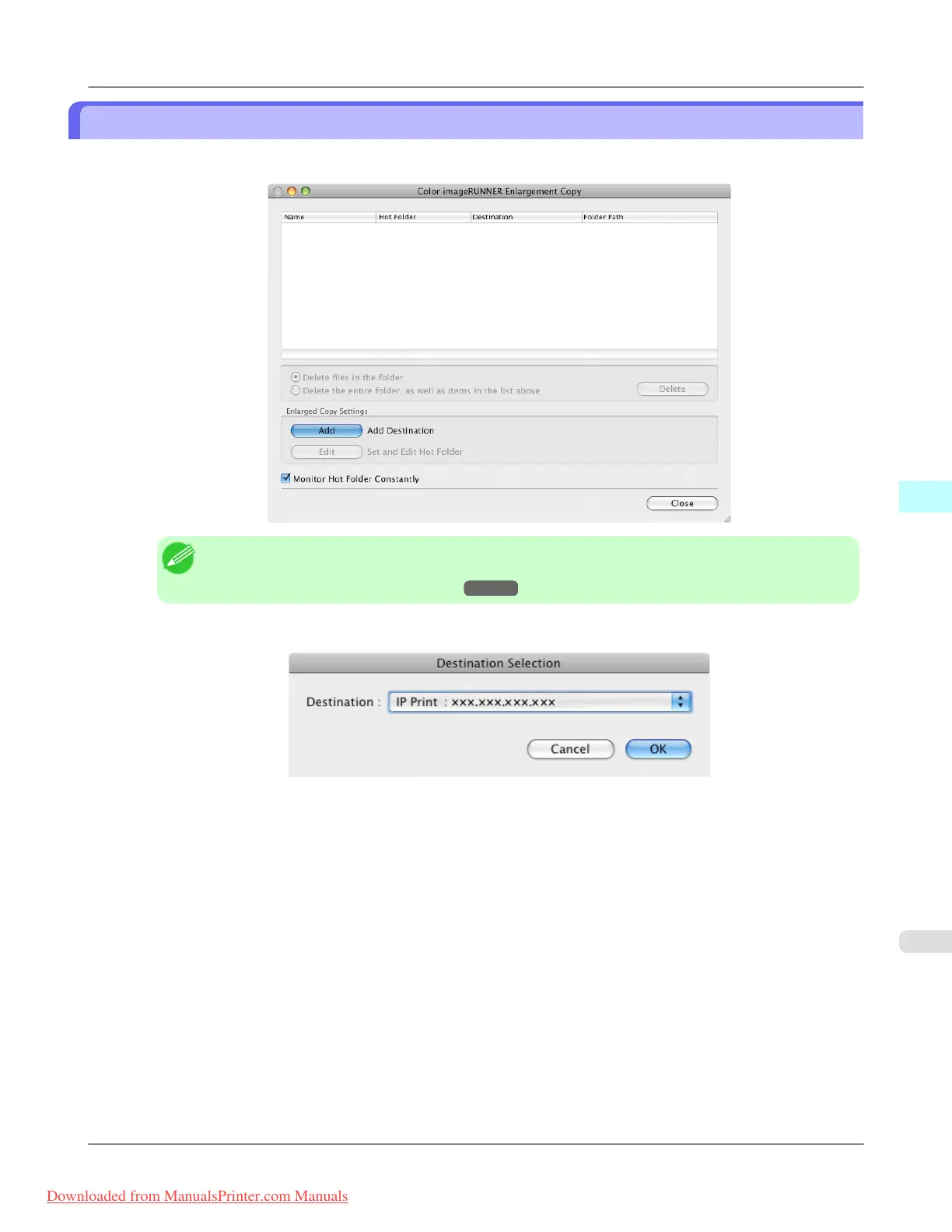 2. Click the Add button in Enlarged Copy Settings to open the Destination Selection dialog box.