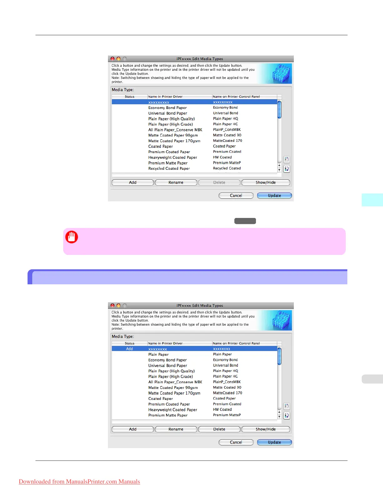 iPF815 Deleting Media Types You Have Added