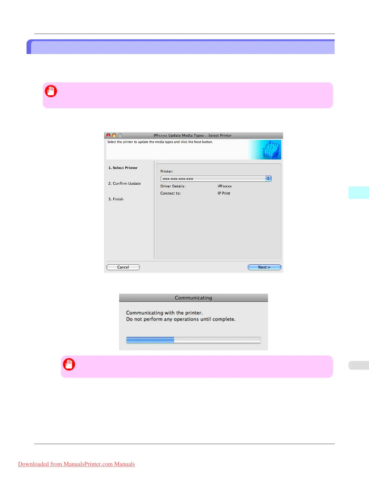 • Do not attempt to print or turn the printer off while the program is communicating with the printer.