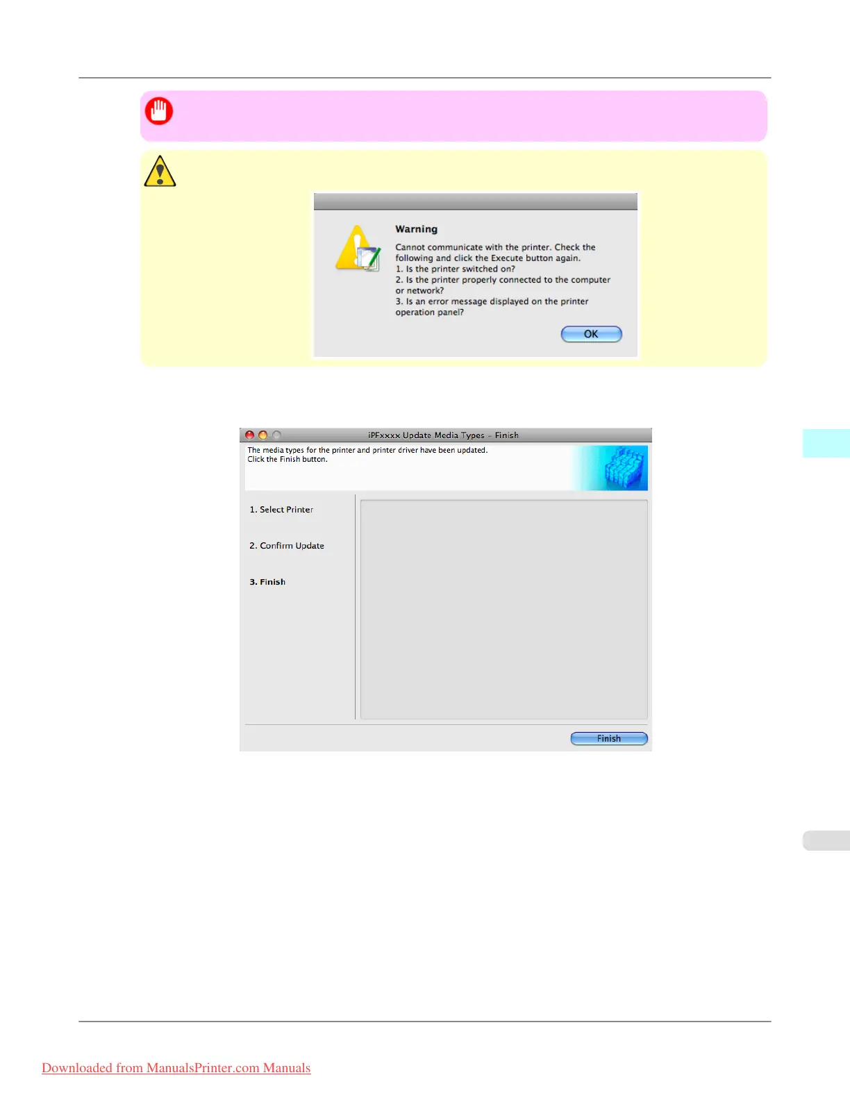 • When the program cannot communicate with the printer, the following warning message is displayed.