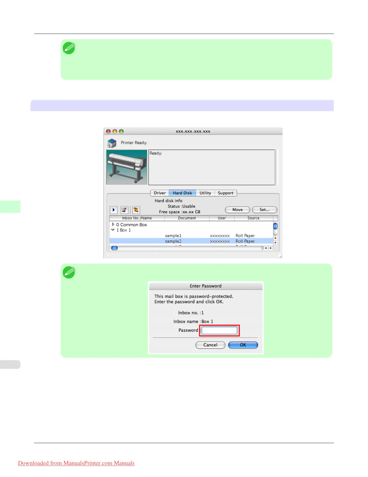 1. In the Hard Disk pane, click ▶ next to Inbox No./Name to list saved jobs.