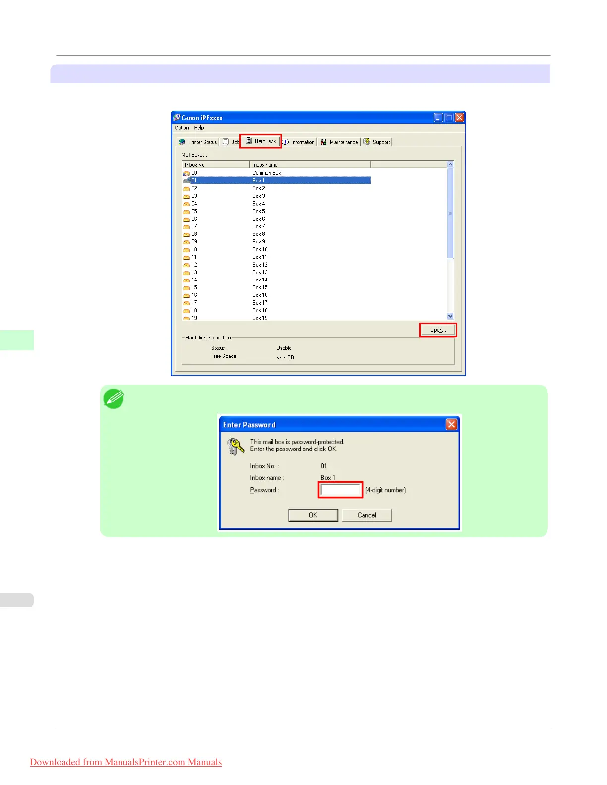 1. On the Hard Disk sheet, select a mail box in the list and click Open.