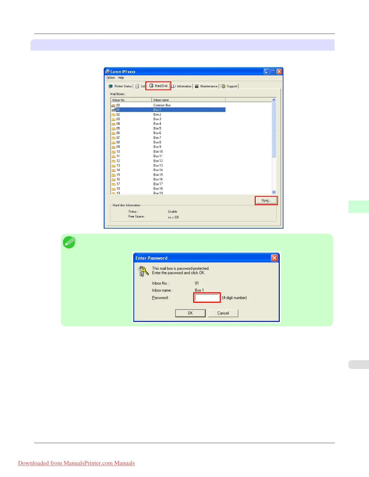 1. On the Hard Disk sheet, select a mail box in the list and click Open.