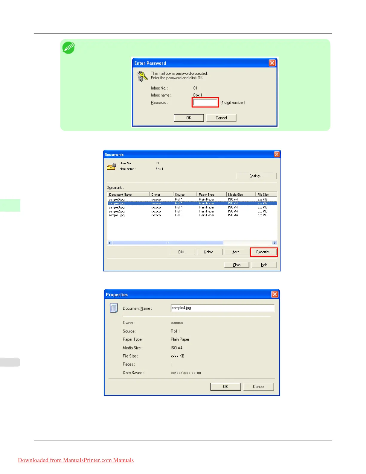 2. In the Documents dialog box, select the saved job in the list and click Properties.