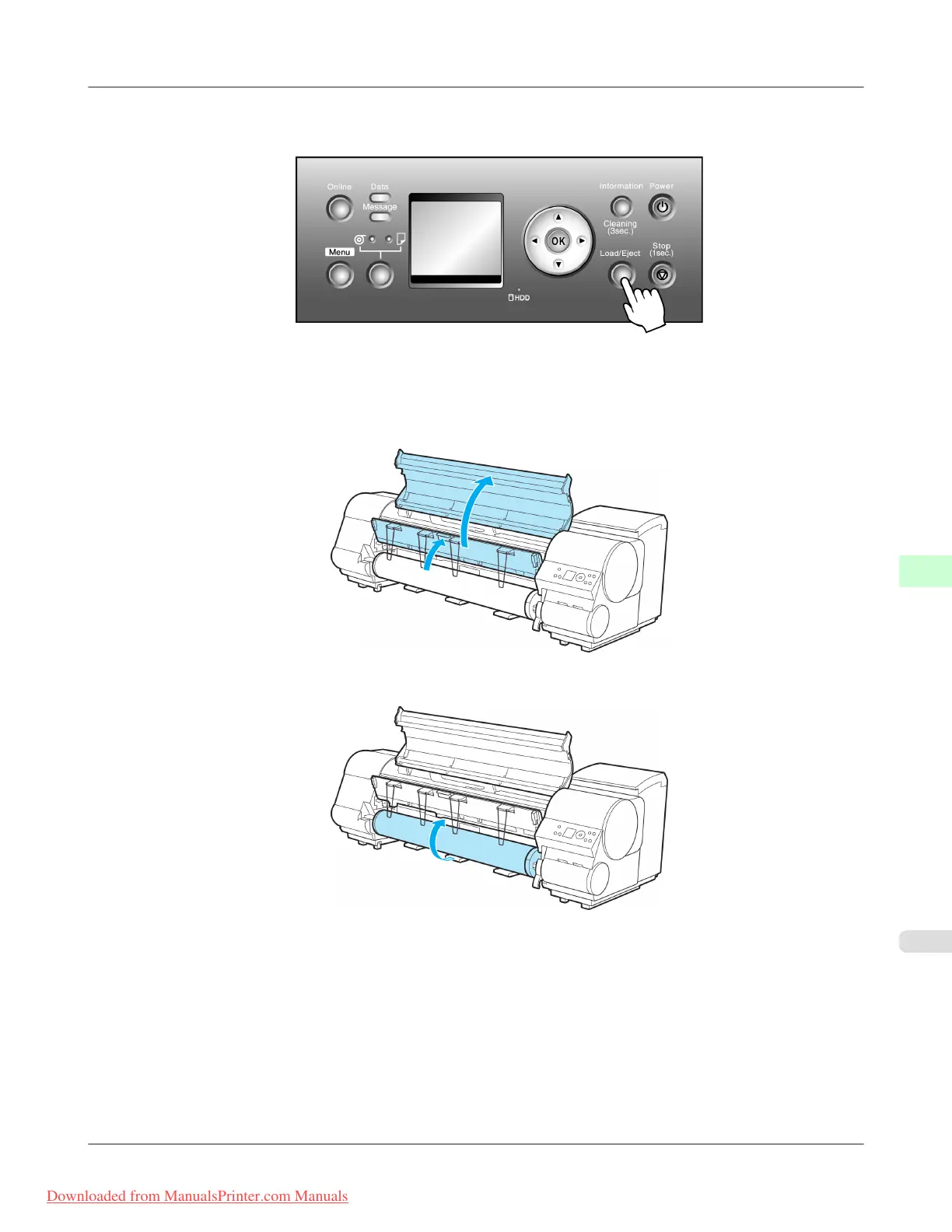 4. Using both hands, rotate the Roll Holder in the direction of the arrow to rewind the roll.