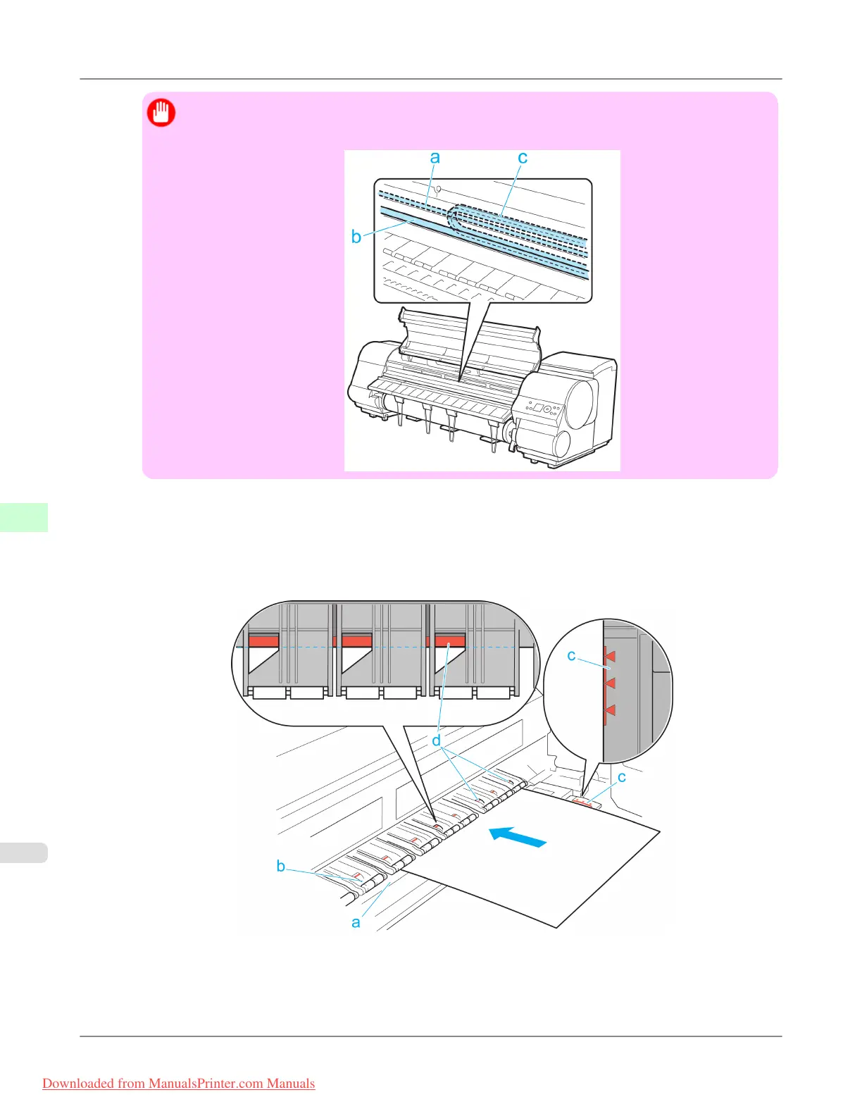 1. Align the sheet with the Paper Alignment Line (c) at right.