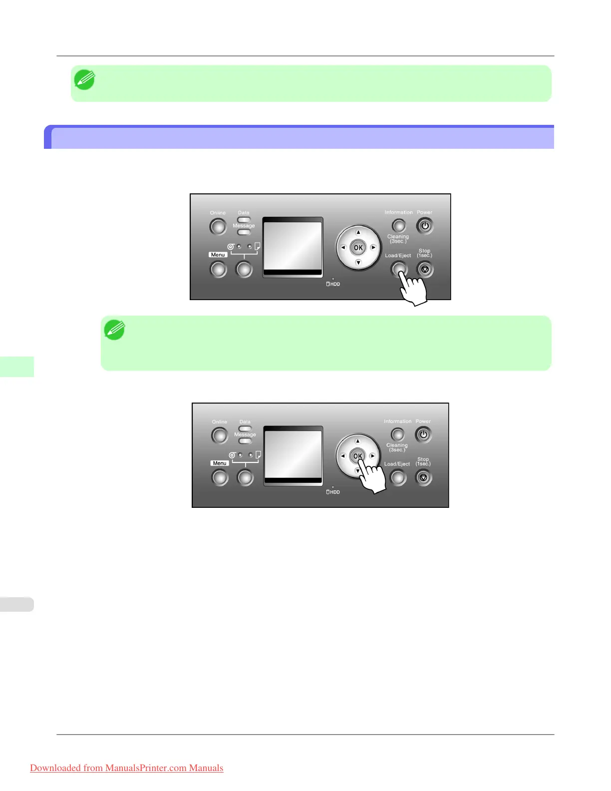 cannot be ejected by using the Load/Eject button when print jobs are in progress or during the