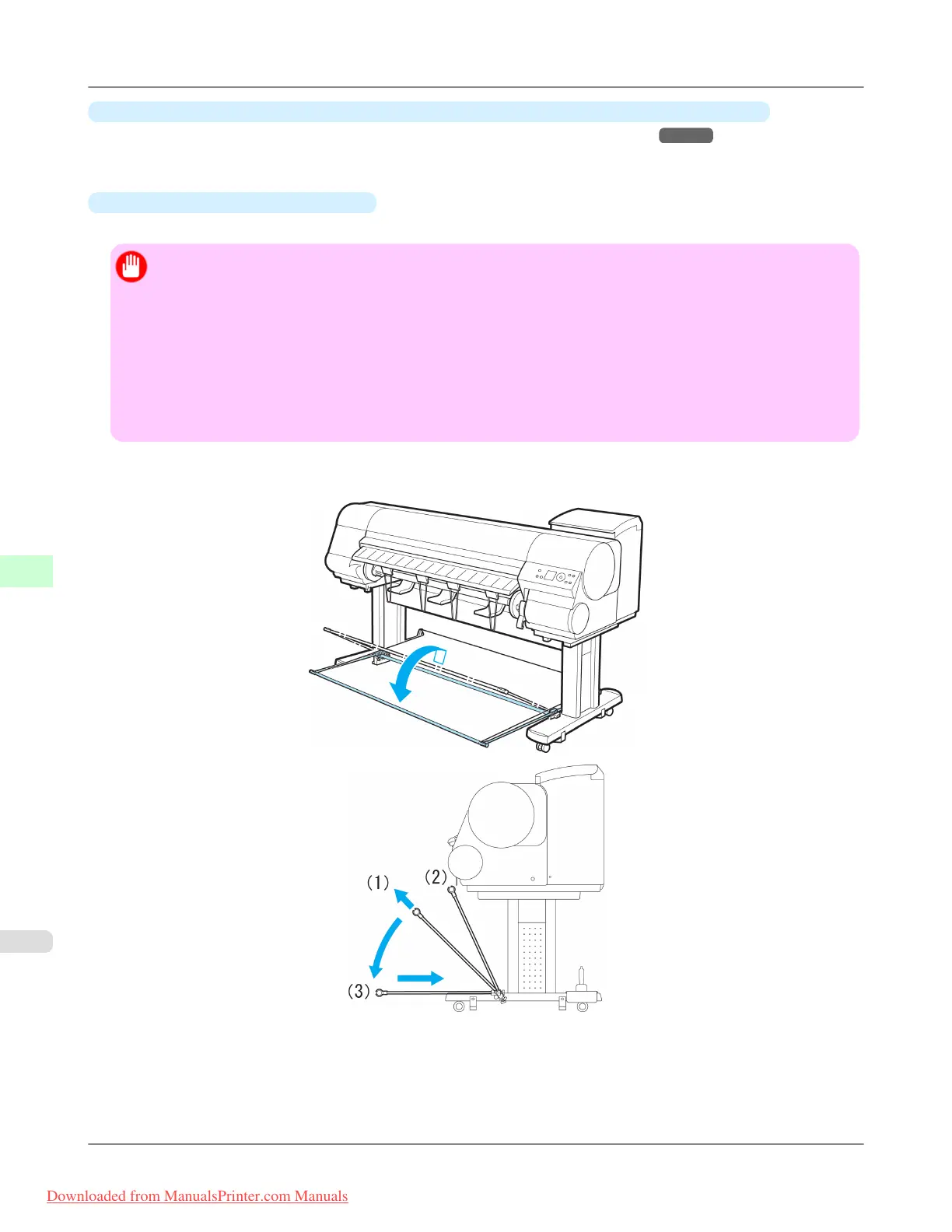 Lower it to position (3) for storage. (See "Stowing the Stationary Output Stacker.") →P.661