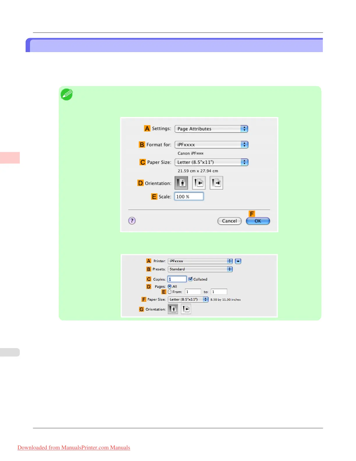 3. Choose the original size in the F Paper Size list.