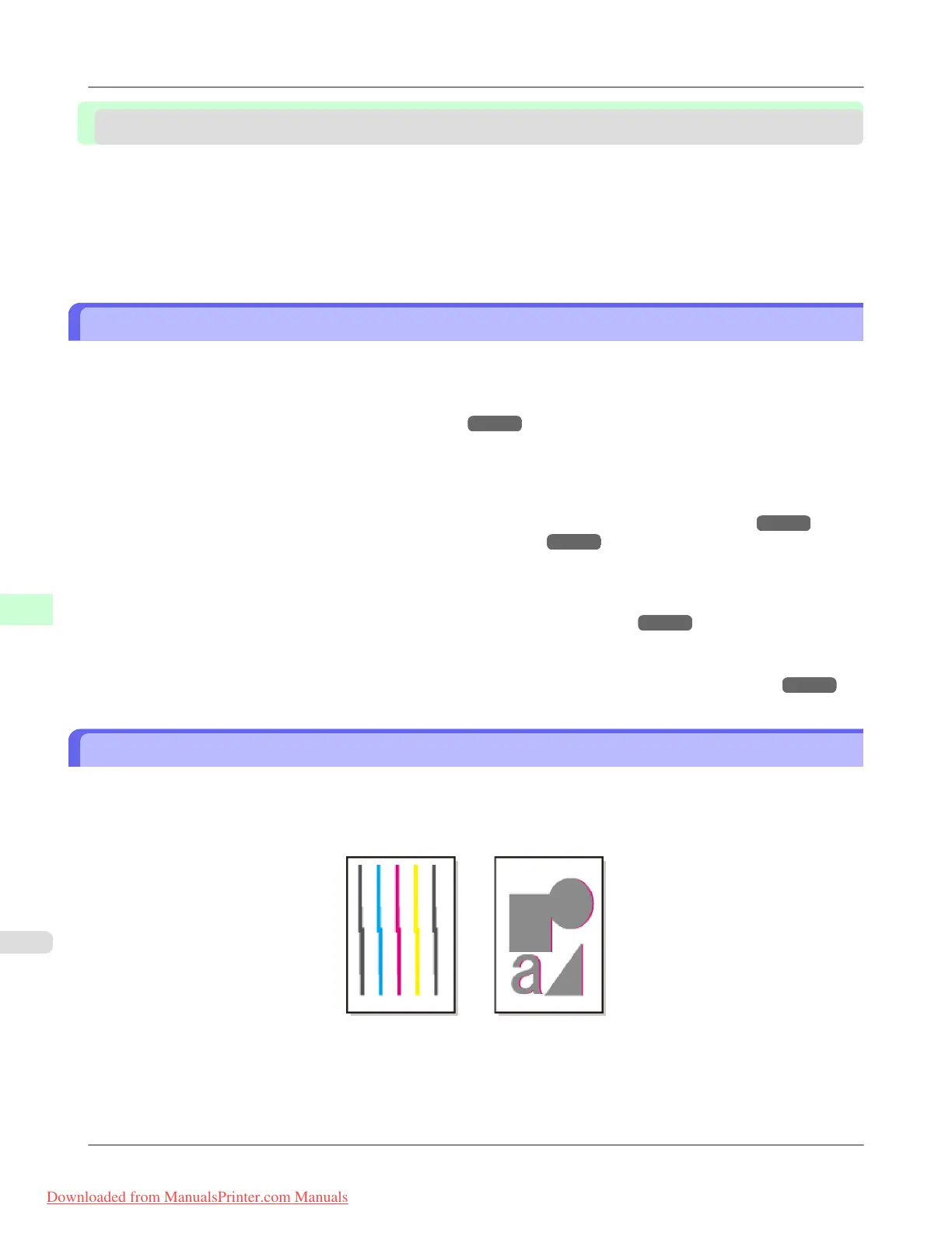 If printed documents are affected by the following problems, try adjusting the printhead.