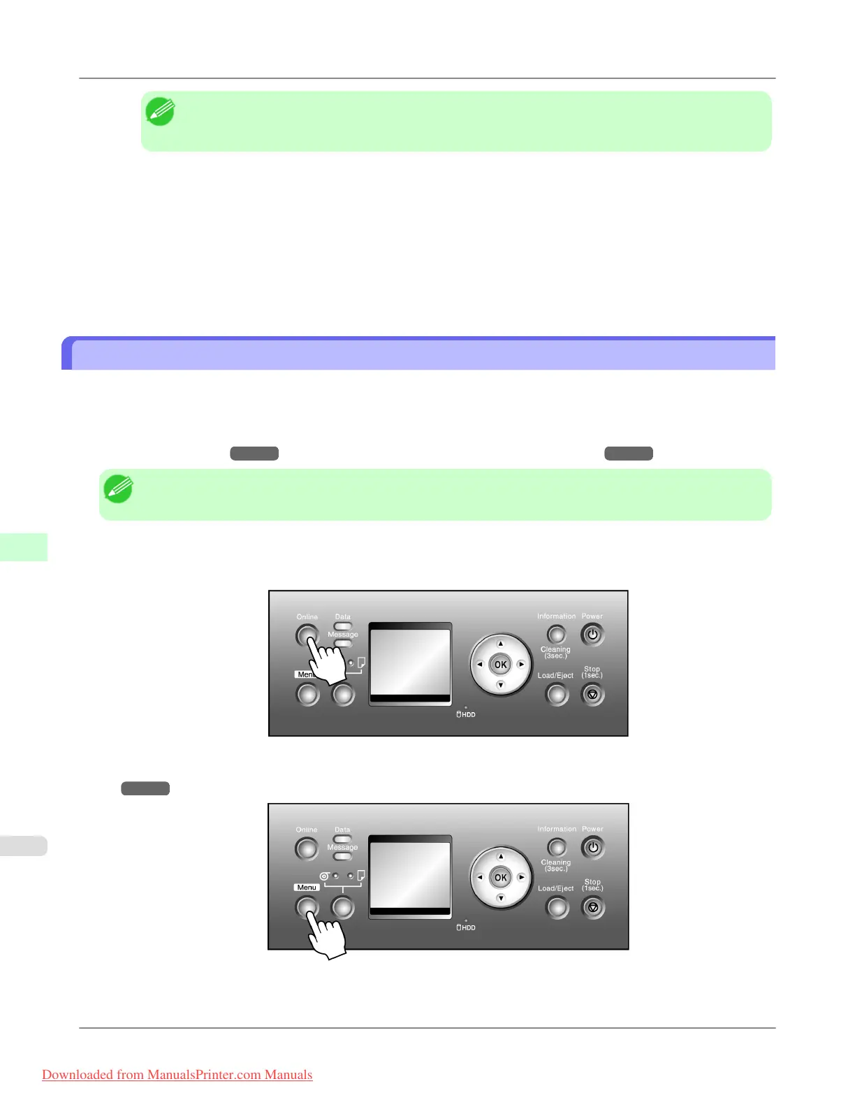 the Menu button to display the menu during printing. (See "Main Menu Settings (During Printing).")