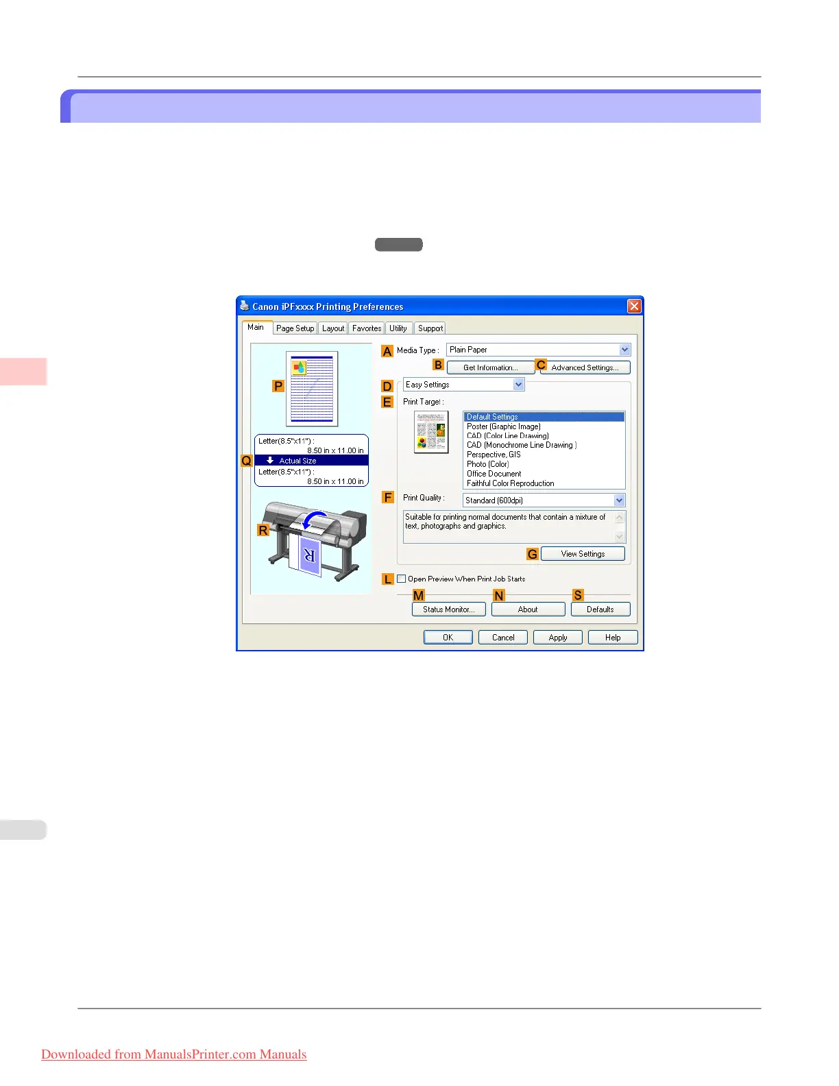 Choosing the Document Type and Printing Conditions (Windows) iPF815