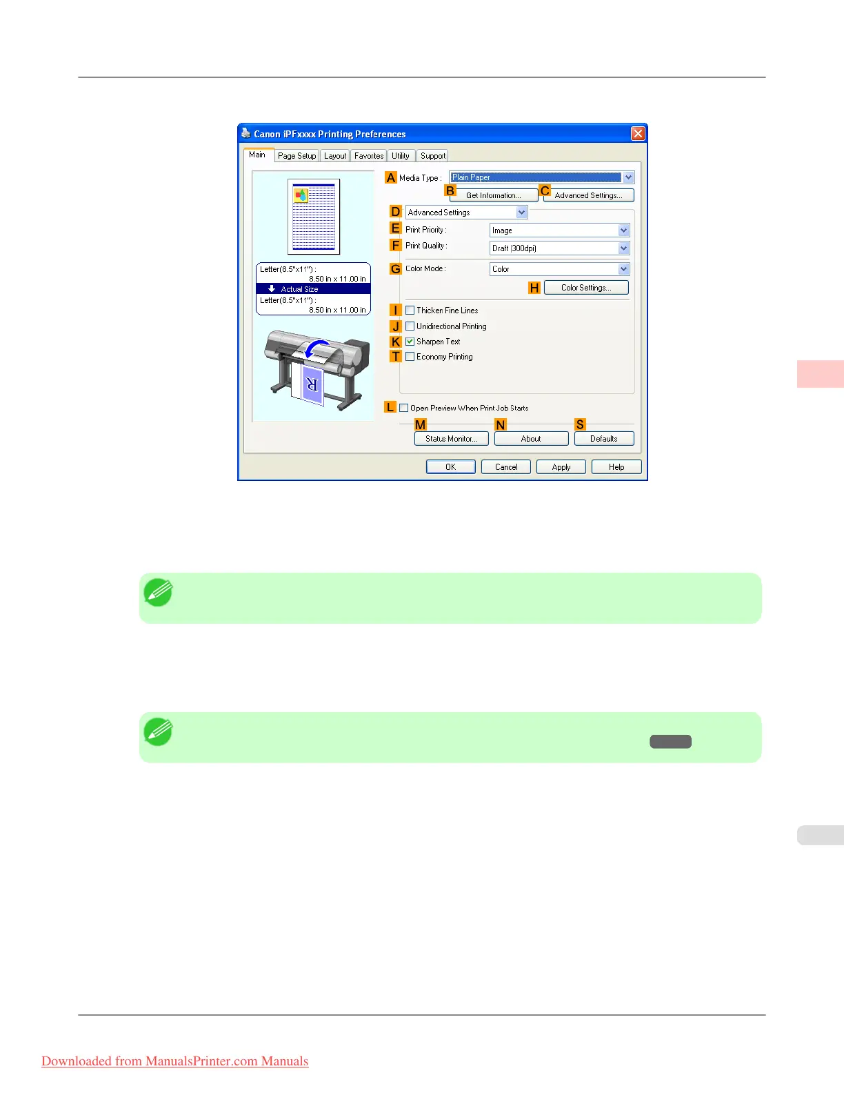 iPF815 Choosing the Document Type and Printing Conditions (Windows)