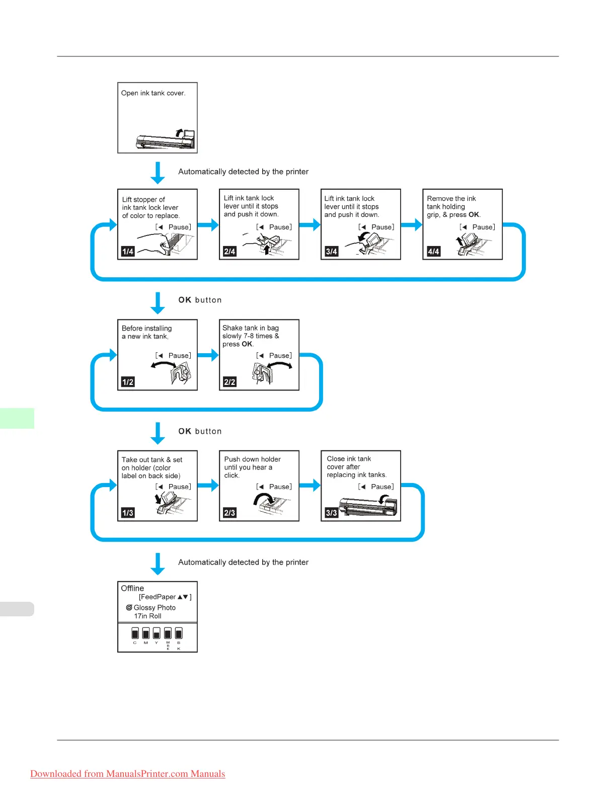 When all actions in the sequence are finished, the instruction screen for the next step is displayed.