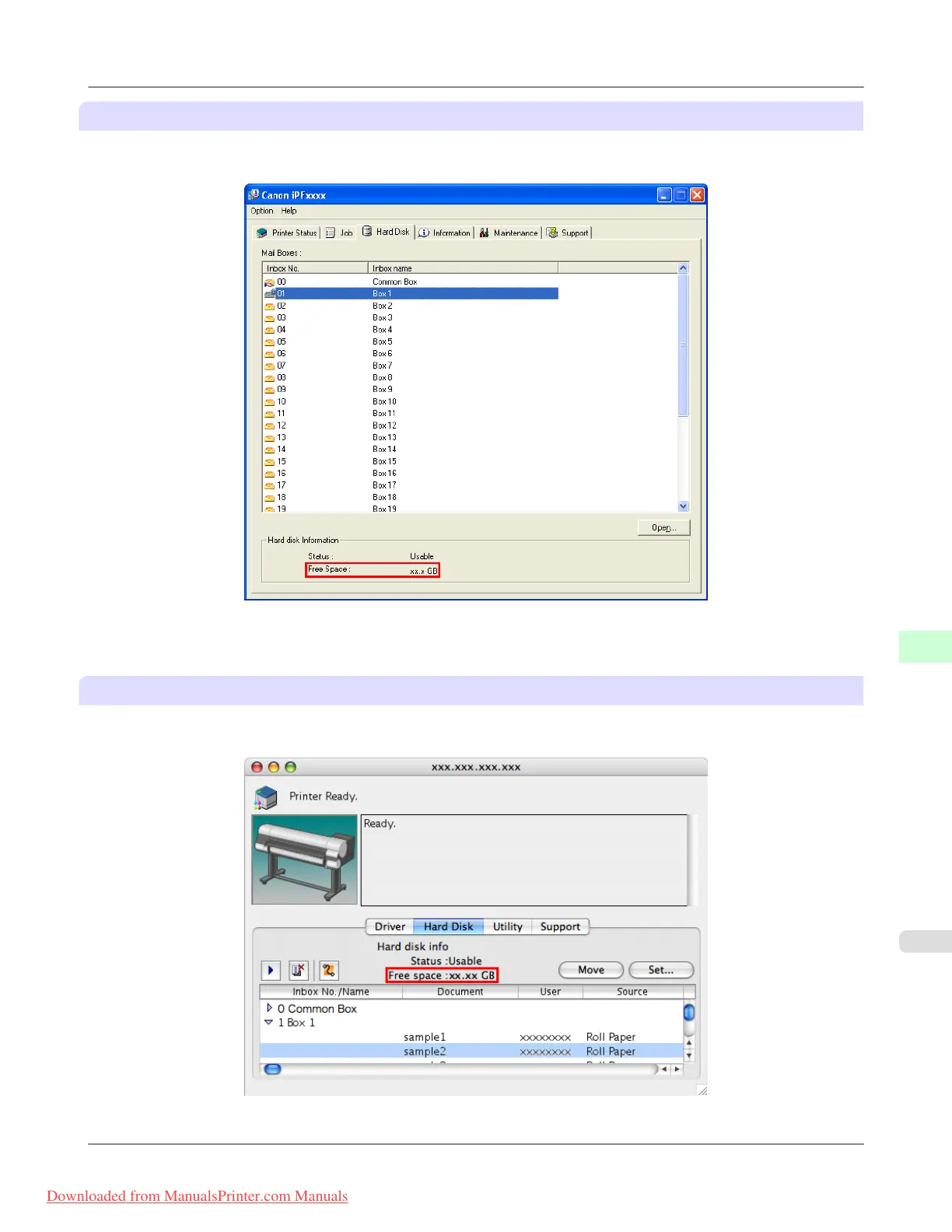 ・ Hard Disk Pane in imagePROGRAF Printmonitor