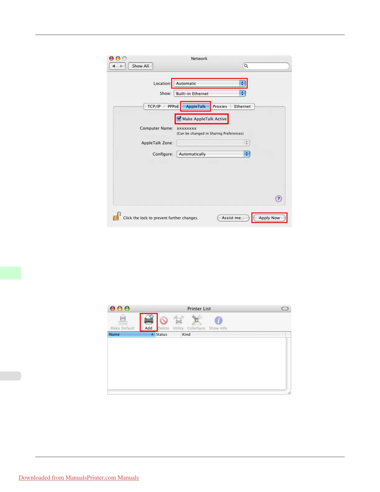 2. In Show, choose Built-in Ethernet. Next, click AppleTalk, select Make AppleTalk Active, and click Apply now.