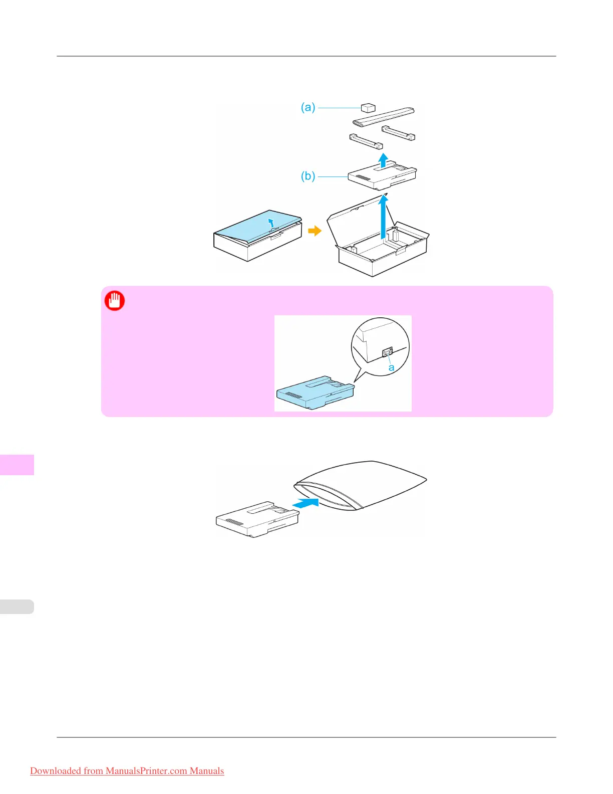 the box, remove the plastic bag, packaging material, and Shaft Cleaner (a), and then take out the Maintenance