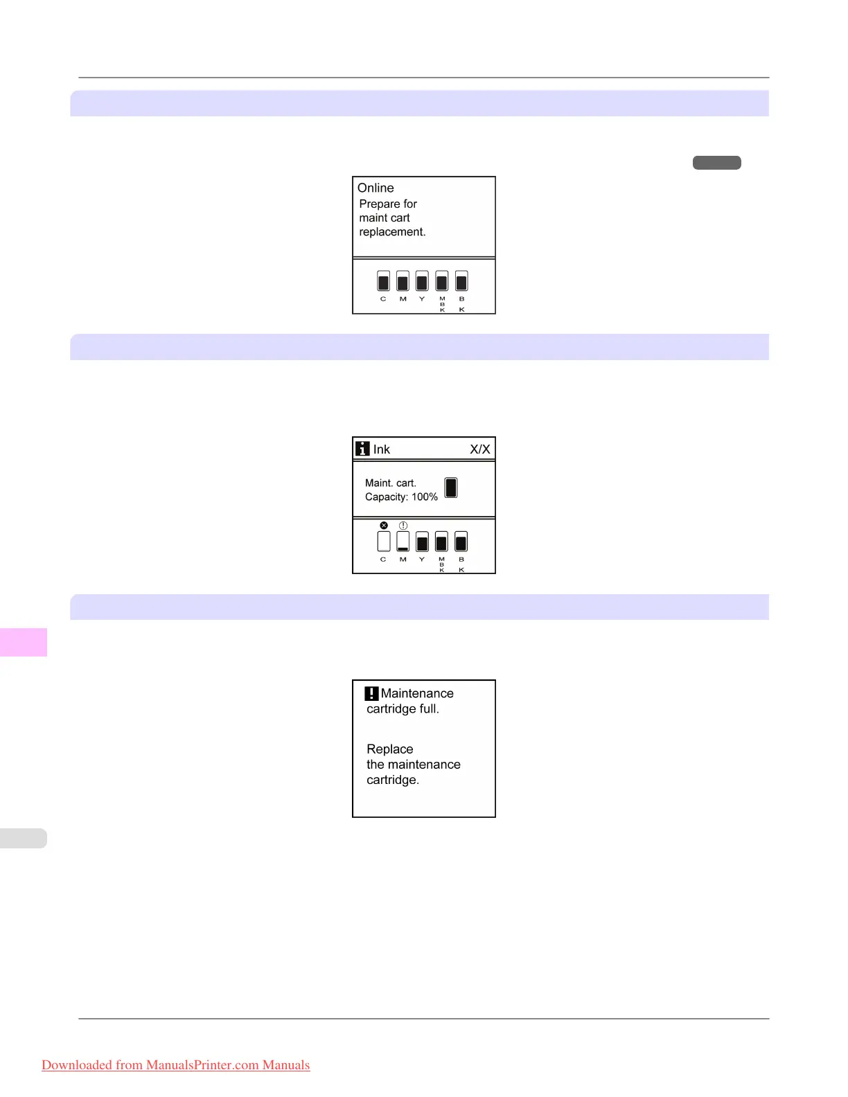 displayed. You can continue to print, but check the remaining Maintenance Cartridge capacity and prepare to replace the