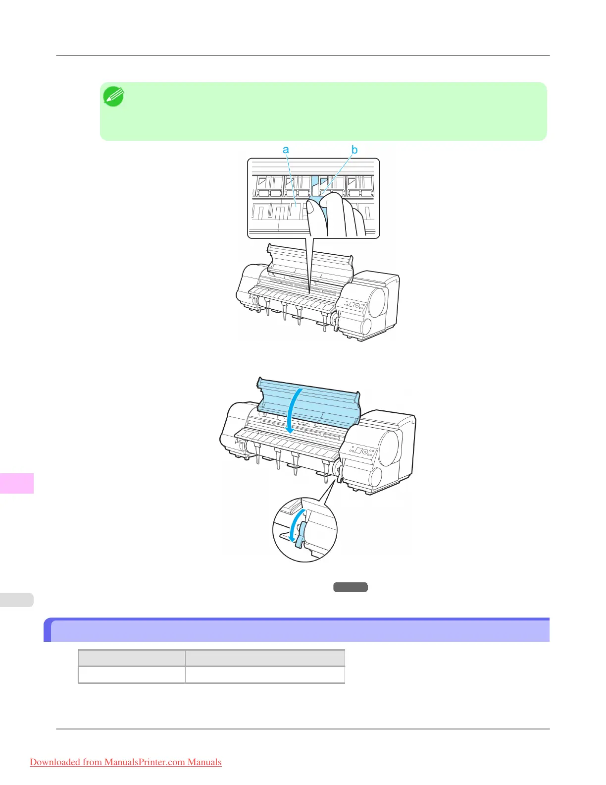 insert it through the gap of the Platen (a) and the Paper Retainer (b), and push the jammed paper out.