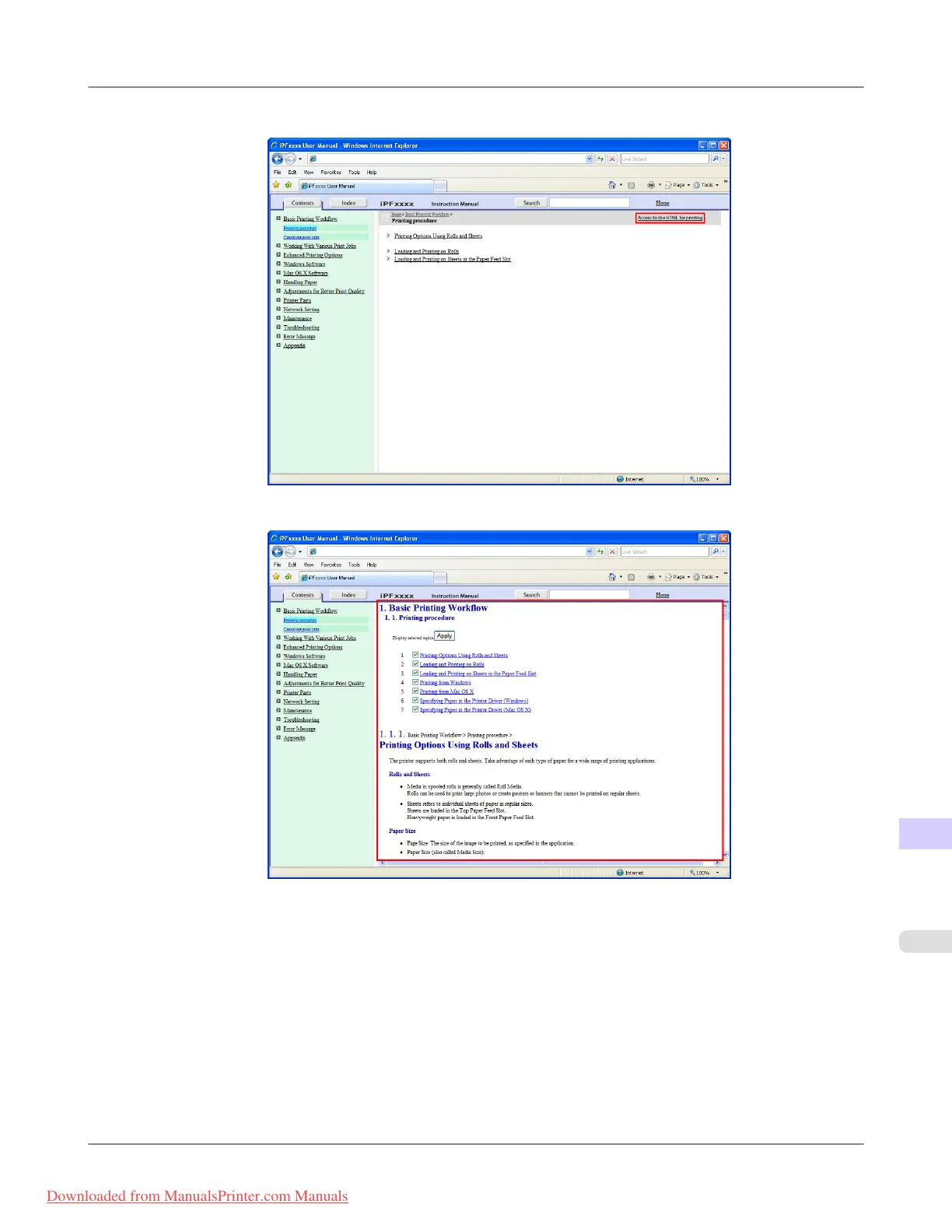 The topics in Printing Procedure are displayed together in HTML format, ready for printing.