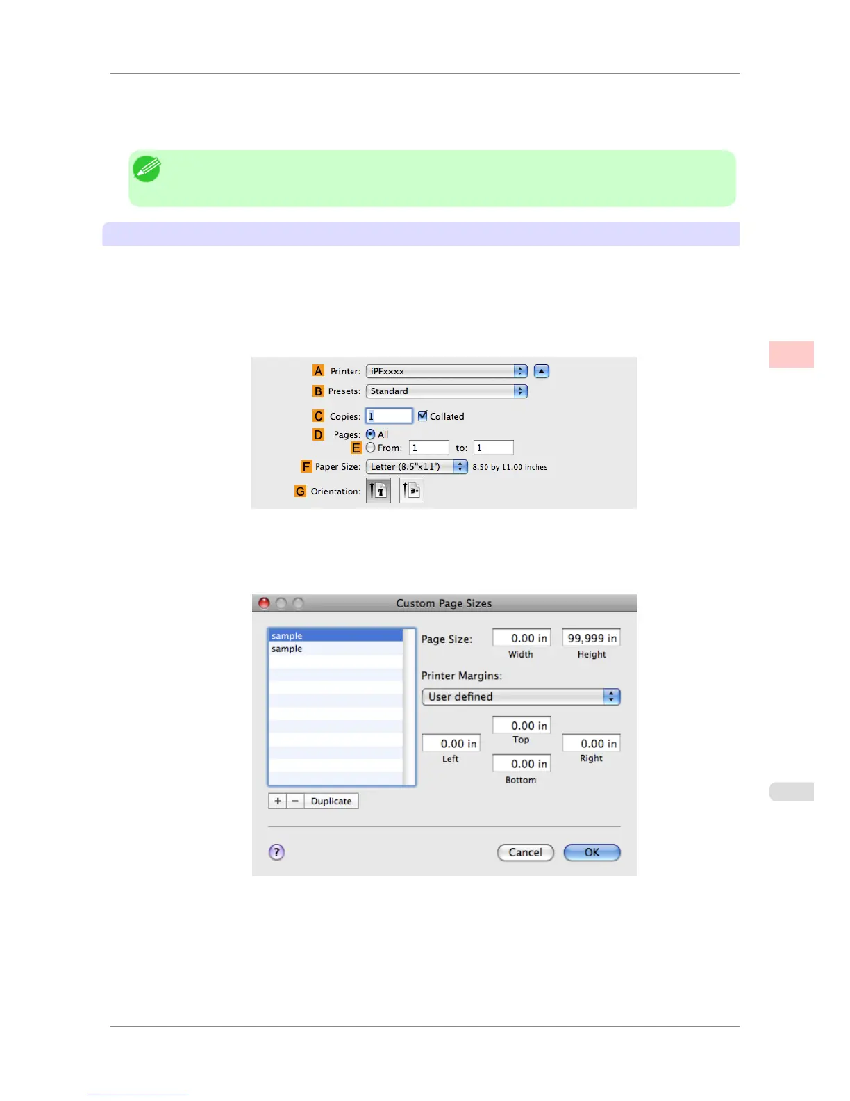 following procedures are based on Mac OS X 10.5. The method of setting up non-standard paper