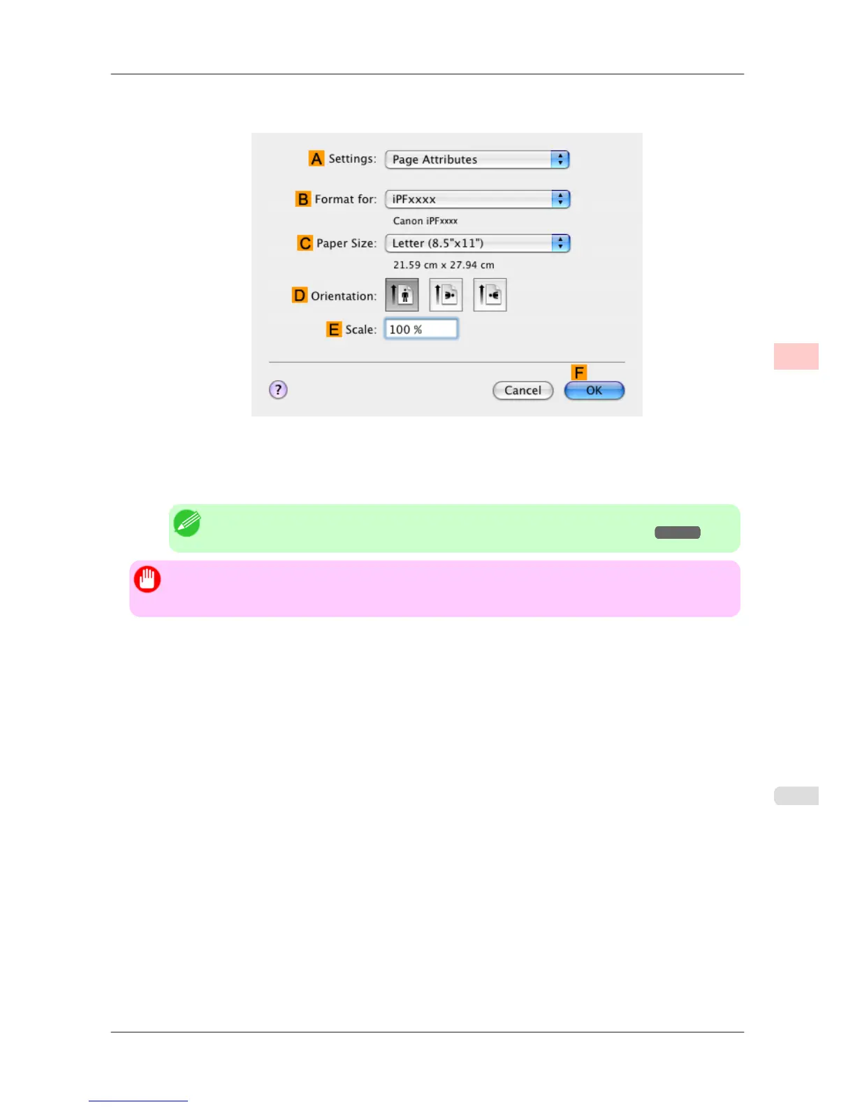 setting matches the original size as selected in C Paper Size in the Page Attributes