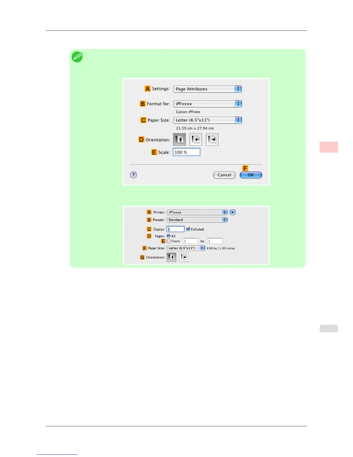 Page Attributes dialog box from Page Setup.