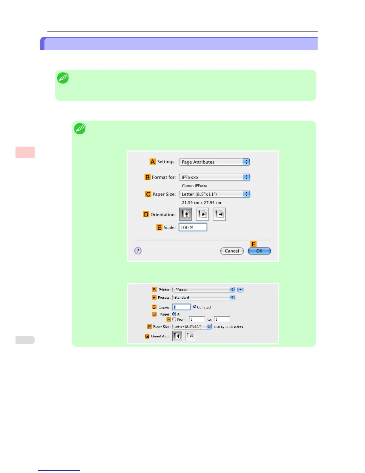 Page Attributes dialog box from Page Setup.
